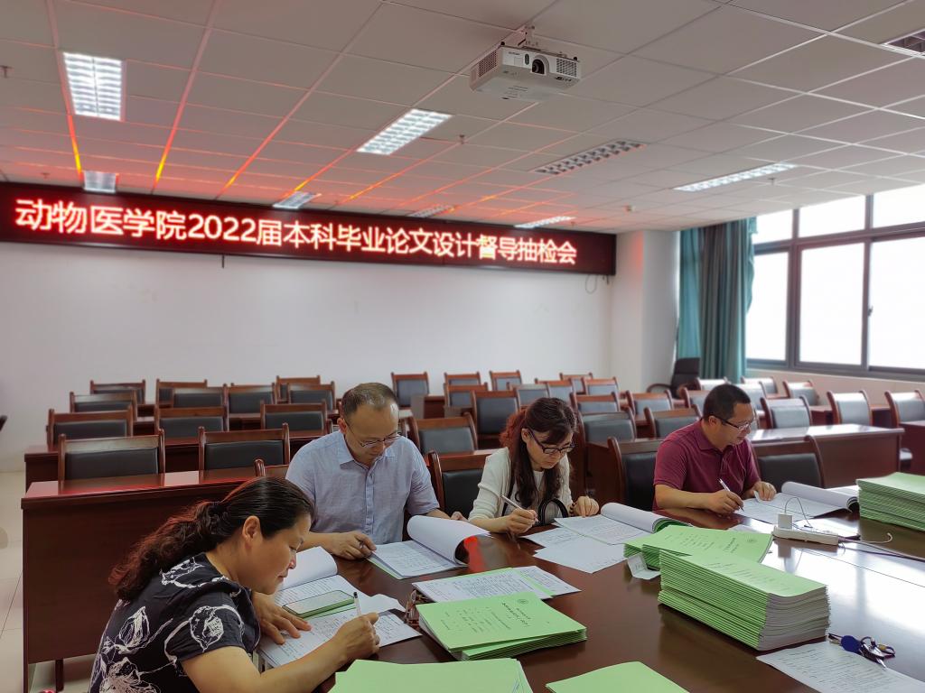本科生毕业论文(设计)是本科人才培养的最后一环,在一定程度上反映人才培养质量。在论文选题、开题、试验、撰写与答辩各个环节追踪和考察,是保证人才培养质效,提升教学水平的必要途径。为贯彻落实新时代教育评价相关文件精神,按照学校《本科生论文(设计)抽检办法》要求,德赢VWIN官方网站于2022年5月31日至6月2号在分管教学领导贾仁勇副院长带领下,由6位院教学督导组成检查小组,对动物医学、动植物检疫、药学和药物制剂共计437份本科毕业论文进行抽查,抽查比例按专业不低于30%。