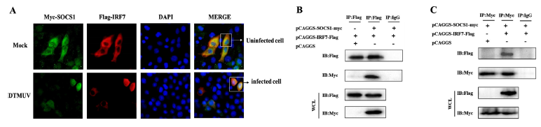 课题组阐释了TLR3信号通路的激活促进了DTMUV感染期间SOCS1的表达,上调的SOCS1通过介导IRF7的K48连接的泛素化和蛋白酶体降解进而拮抗I型IFN信号促进DTMUV的复制。进一步研究发现SOCS1蛋白自身存在K48连接的泛素化修饰,JOSD1作为一种去泛素化酶介导SOCS1去泛素化从而稳定SOCS1的表达,并且JOSD1通过稳定SOCS1的表达抑制DTMUV感染期间I型IFN的产生。