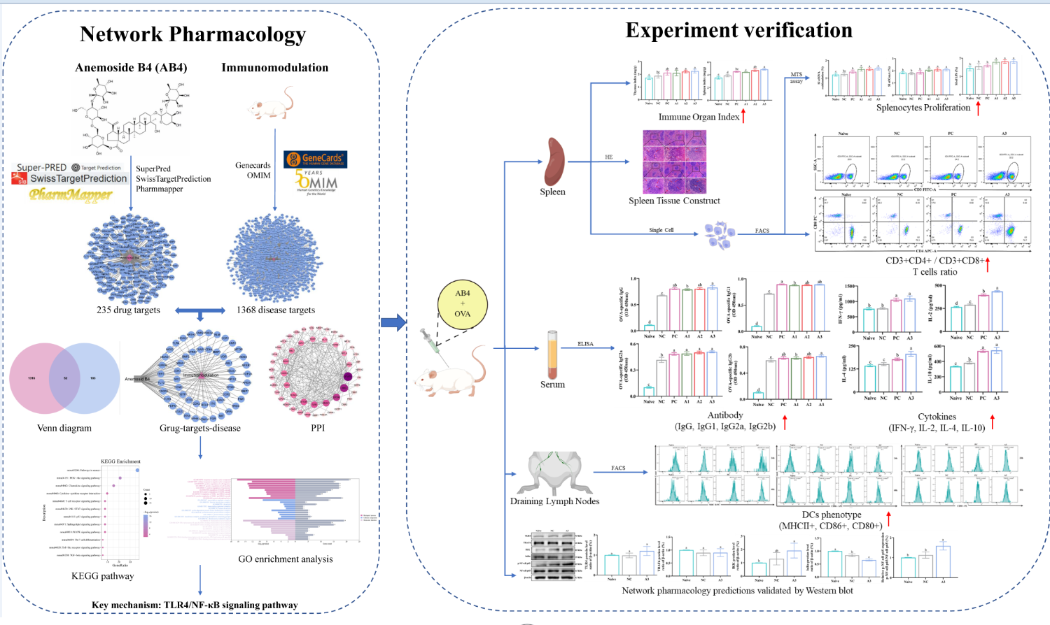 近日,德赢VWIN官方网站临床兽医学系研究成果“Exploration of the immuno-adjuvant effect and mechanism of Anemoside B4 through network pharmacology and experiment verification”(通过网络药理学结合试验验证探究白头翁皂苷B4的免疫佐剂作用及其机制)在国际著名期刊《Phytomedicine》(一区TOP,IF=7.9)在线发表(原文链接:https://doi.org/10.1016/j.phymed.2023.155302)。这项研究首次全面研究了中药白头翁提取物——白头翁皂苷B4在疫苗佐剂领域的作用机制。这项研究结果为白头翁皂苷B4在动物疫苗的临床应用提供了重要的科学依据,为提高疫苗免疫效果开辟了新的研究思路。