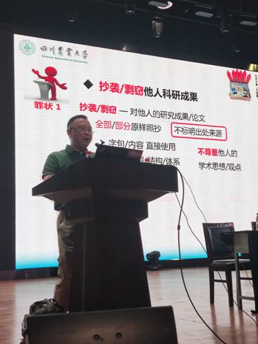 为进一步提升学生对科研诚信和学术道德的思想意识和行为认知,落实立德树人的根本任务,9月5日晚,动物医学学院临床兽医系教授、博士生导师邓俊良为全院600余名2024级新生开展了一场题为《坚守科研诚信,防范学术不端》的专题讲座。