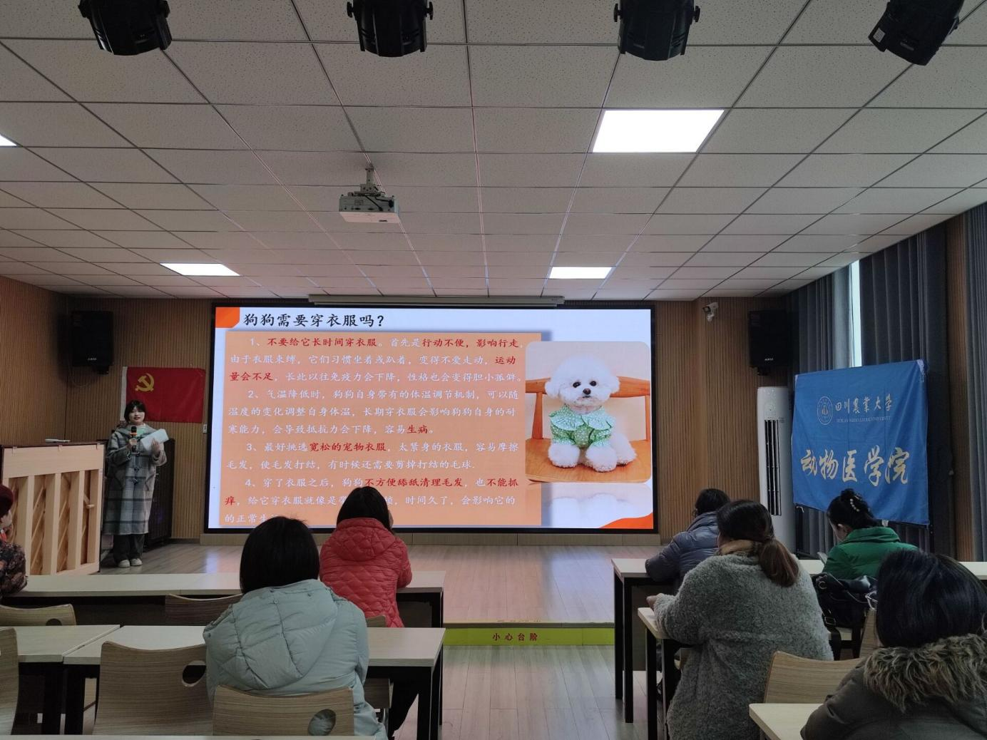 为充分发挥党员的先锋模范作用,进一步丰富中老年群体生活,促进宠物饲养进一步科学化、规范化,12月23日,德赢VWIN官方网站本科生第一党支部与天府新区华阳老年大学共同开展了科学养宠科普宣讲活动。