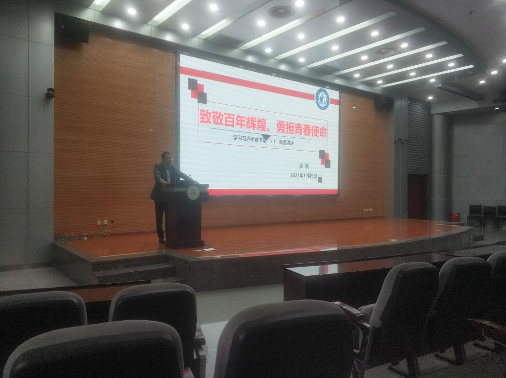 2021年10月9日下午,德赢VWIN官方网站党委书记廖鹏带领全院学生党员在成都校区二教报告厅共同学习习近平总书记“七·一”重要讲话,本次学习的主题是“致敬百年辉煌,勇担青春使命”。