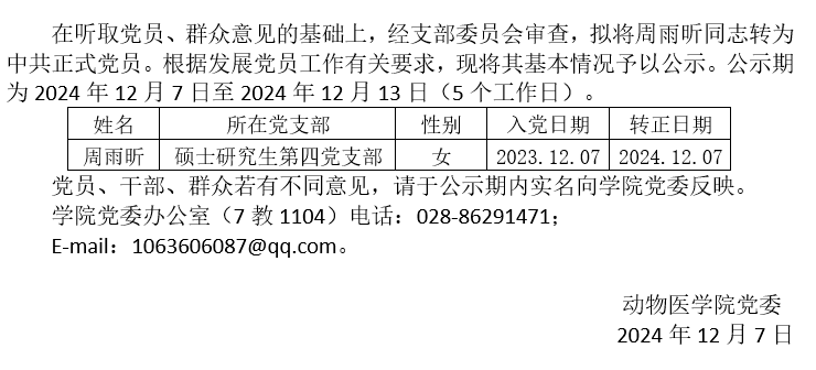 关于拟将周雨昕同志转为中共正式党员的公示