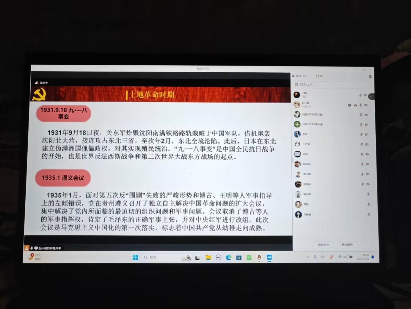 随后,活动进入了党史简介环节。分队主持人赵兴熠通过PPT展示和线上讲解的方式,向全体队员详细介绍了中国共产党从成立之初的艰难探索,到领导全国各族人民实现民族独立、人民解放的伟大历程和改革开放以来中国特色社会主义事业取得的辉煌成就。