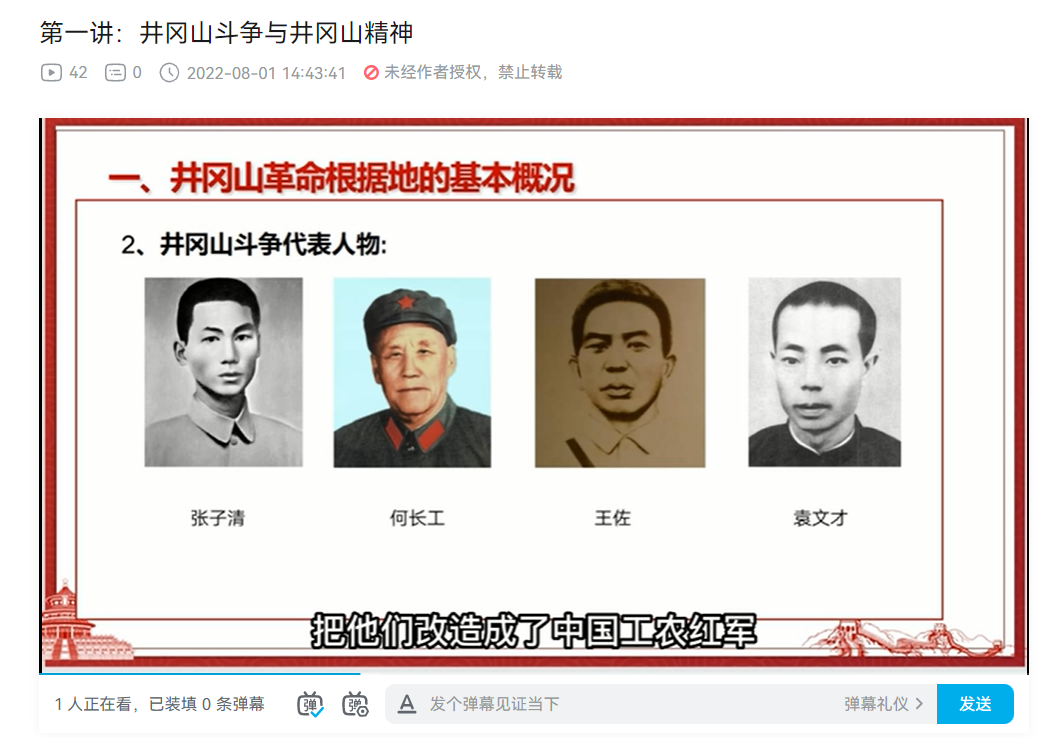 同时,录制的微党课视频以网络链接的方式分享至德赢VWIN官方网站的各党支部、团支部,不断扩大微党课辐射面、在广大青年中营造浓厚的党史学习氛围,通过“云游”红色革命根据地,引导同学们从先辈故事中、在发展历程中汲取历史经验、感悟“实事求是、敢闯新路;坚定信念、矢志不移;依靠群众、艰苦奋斗”的井冈山精神,把党史中蕴含的精神力量转化为勇毅前行的坚定信念。