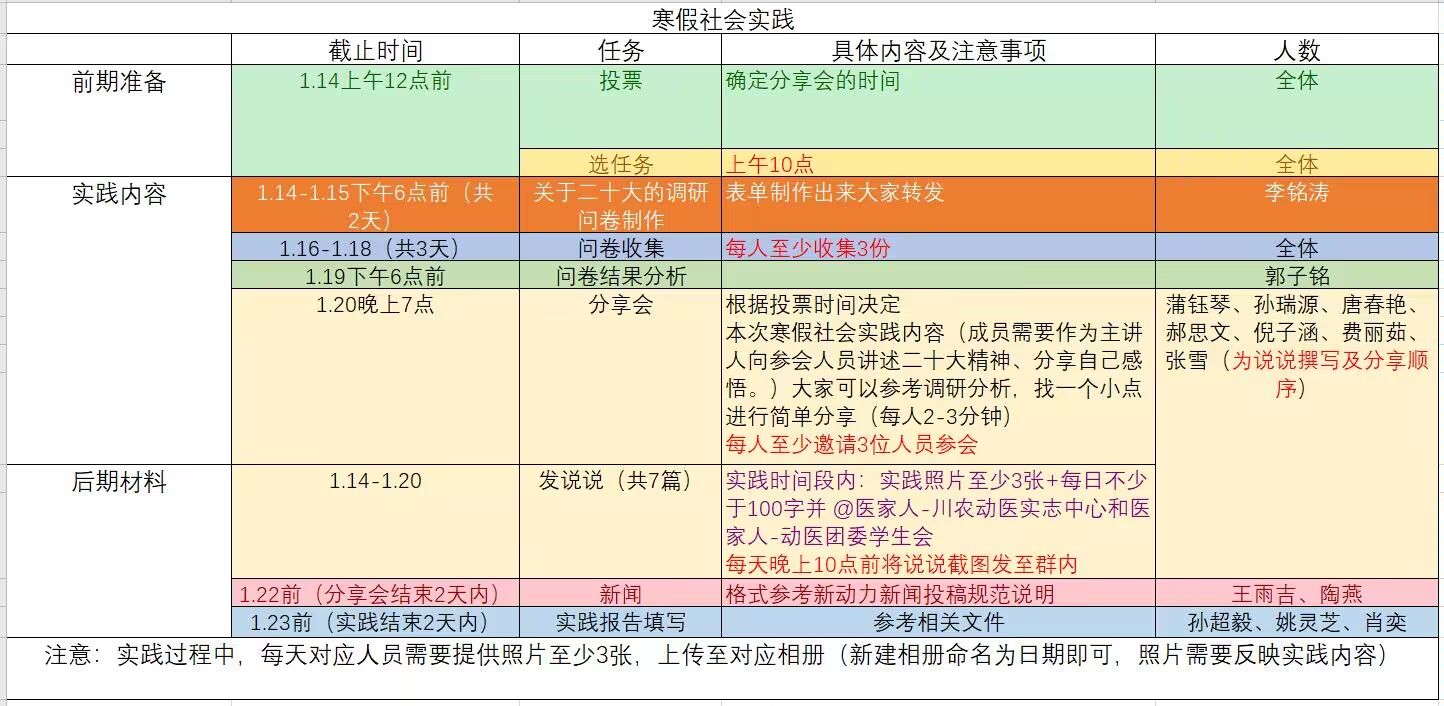 1月14日至22日,由动医本科生第一党支部成员组成的实践团队围绕党的二十大内容和精神内涵,进行了以“‘激思想共鸣,汇精神力量’——党的二十大精神”为主题的调研和宣讲。本次实践的主要内容包括前期准备、调研讨论、宣传与调研结果分析。