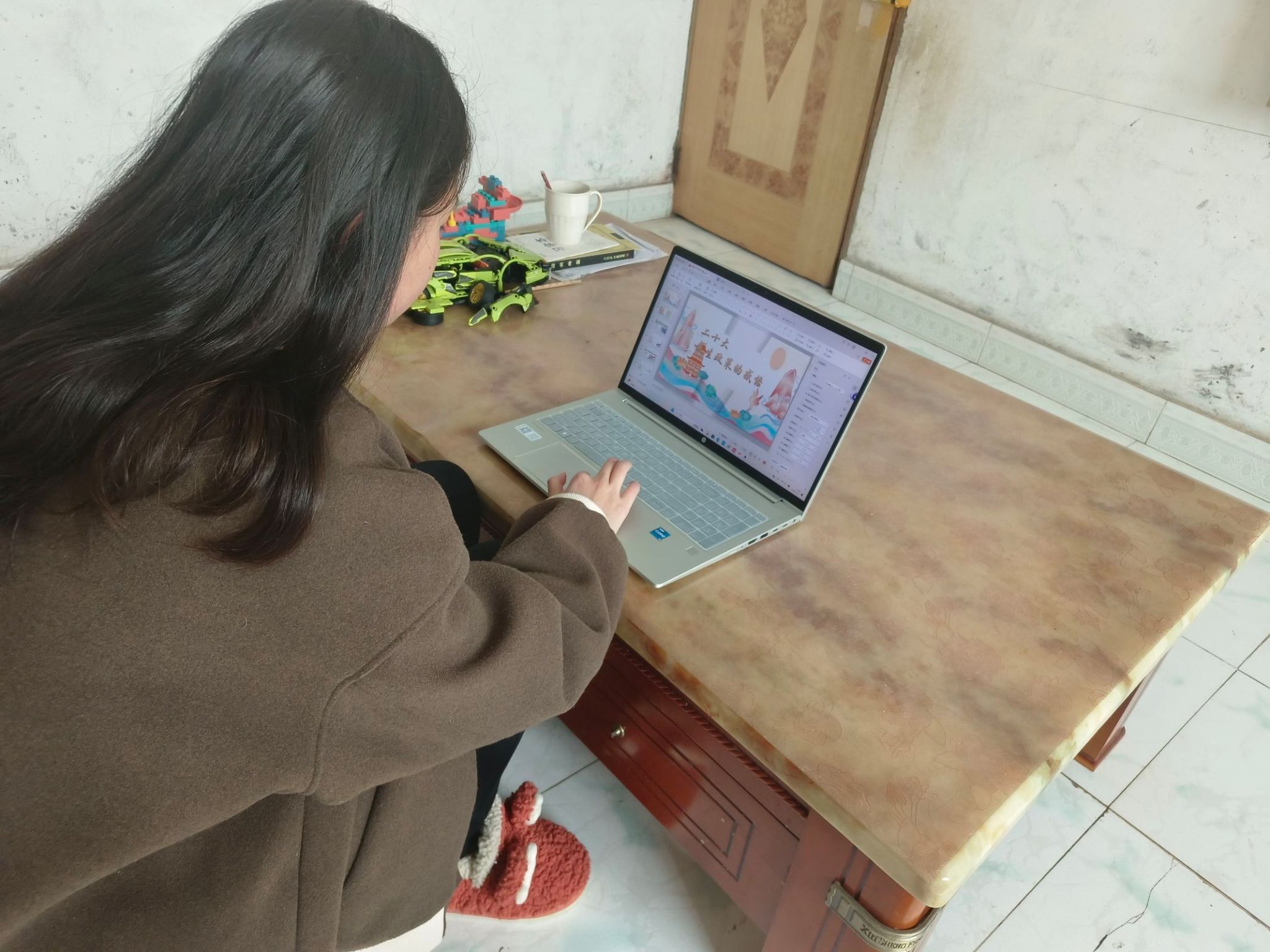 (图为小组成员制作党的二十大宣讲PPT)