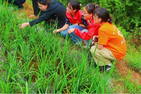 实践活动第一周期以农业为主,在农技站站长冯梓洪等人的带领下,团队于7月10日来到水磨村了解农户们种植的水稻的长势情况,一位农民讲到:“同一块地,同一批秧苗,可总有一片地方的水稻长得不好。”据了解,这种部分水稻倒伏、长势不良可能是由于使用农药的剂量不同、同一块土的土壤条件不同等原因。团队通过亲身体验的方式,进一步了解了农民面临的实际问题,对“三农”问题有了更深刻的体会。