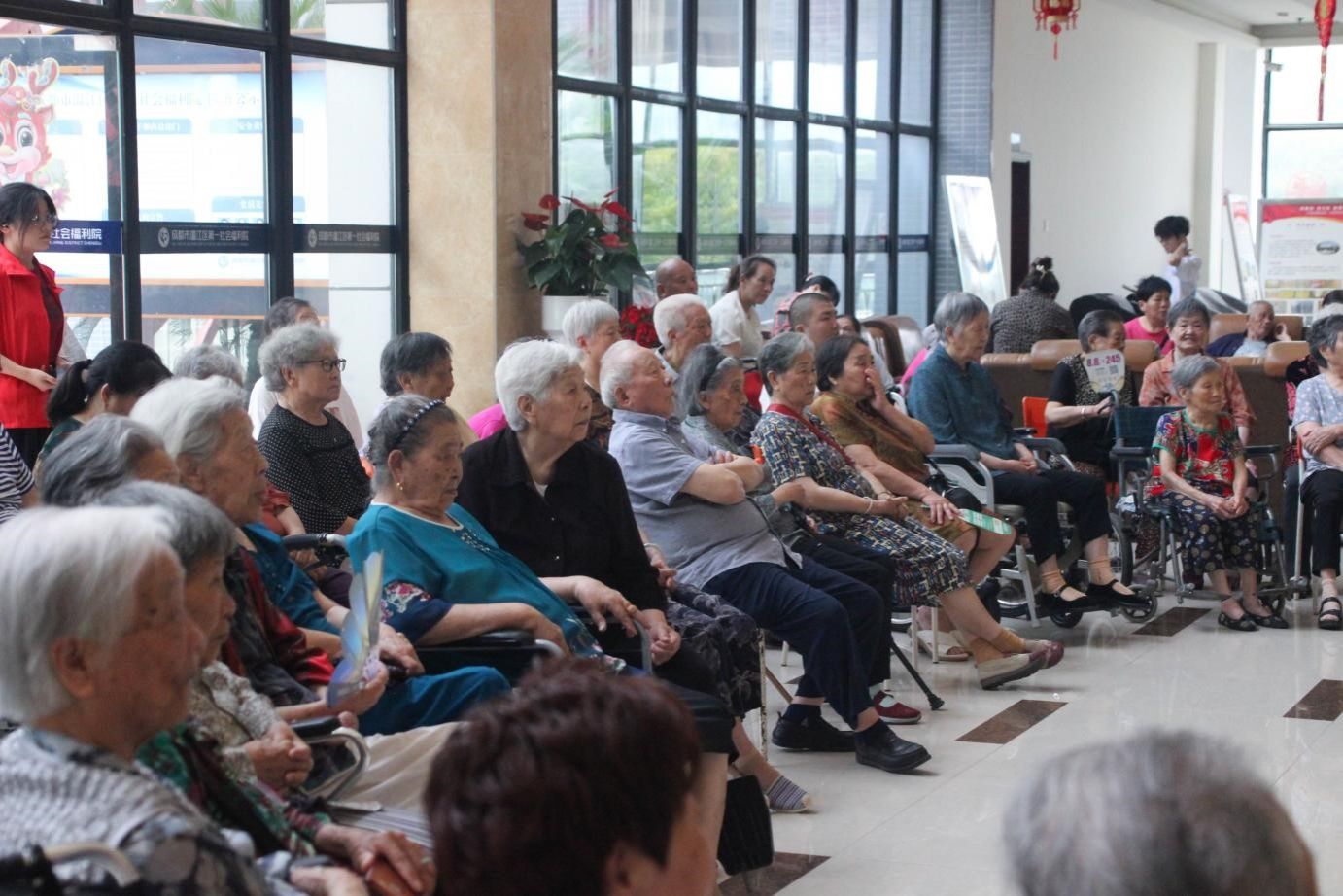 (图为福利院老人观看演员表演)