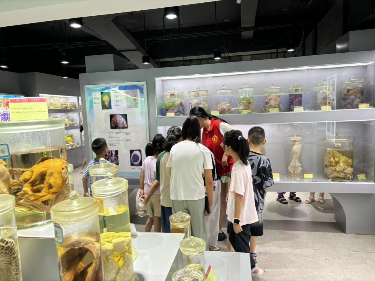 在讲解员的引导下,孩子们不仅了解了各种动物的标本,以及常见动物的器官、病理组织标本,还认识了相关的中药标本,并深入了解了动物标本的制作过程。参观过程中,小朋友们惊叹于动物世界的奇妙和多样性,也对科学研究的严谨和细致有了更深刻的认识。