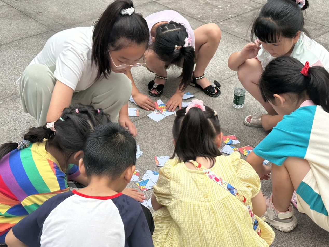 在活动后期,小朋友们通过参与生物拼图、谜语猜猜猜和动物脚印配对等相关游戏,加深了对动物的认识和加强了团队合作意识。