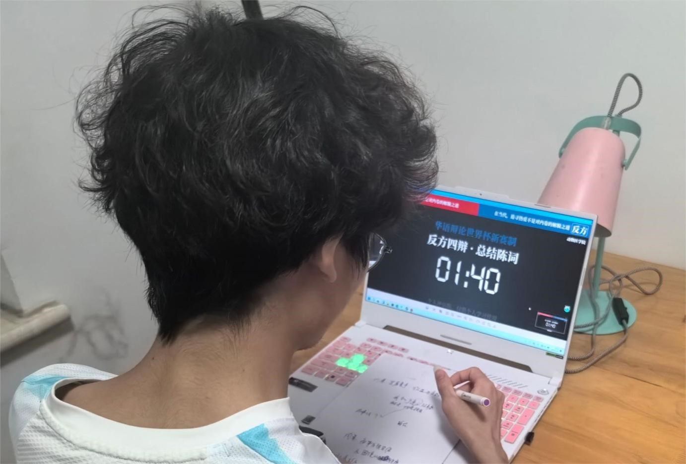 比赛前期,队员们首先集体观看了相关比赛,经过积极交流观后感想后,综合梳理出己方逻辑思路。随后,队员们利用QQ、腾讯会议等线上软件相互沟通,站在正反两方的角度深度思考,进一步加深了对辩题的理解。教练张艺山同学也适时阐述自己的思路,使队员们的逻辑链更加完整。三分队的队员们各抒己见,在线上展开了激烈的讨论,逐步完成了辩位分取、撰写一辩稿、预设攻防、补充数据,完善逻辑链等工作。