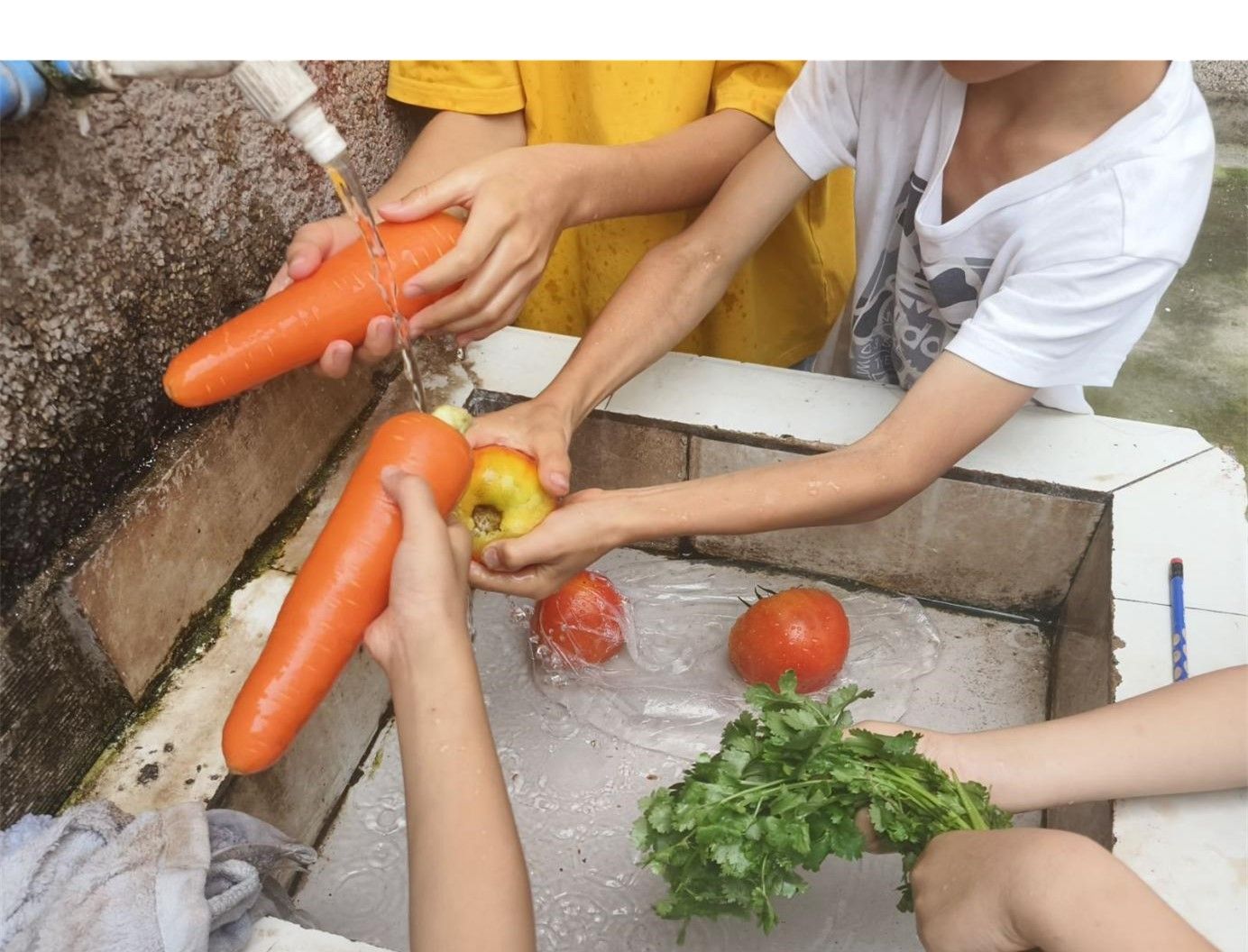 手作凉拌菜让孩子们动起手来,各种蔬菜小知识让孩子们动起脑来,一堂课下来孩子们“精疲力尽”又充满了欢乐。团队通过知识速答大比拼让孩子们记住了各种蔬菜的分科及其有益作用,又通过手作的形式培养孩子们的动手能力,开展了对脑对手“双丰收”的趣味课堂。