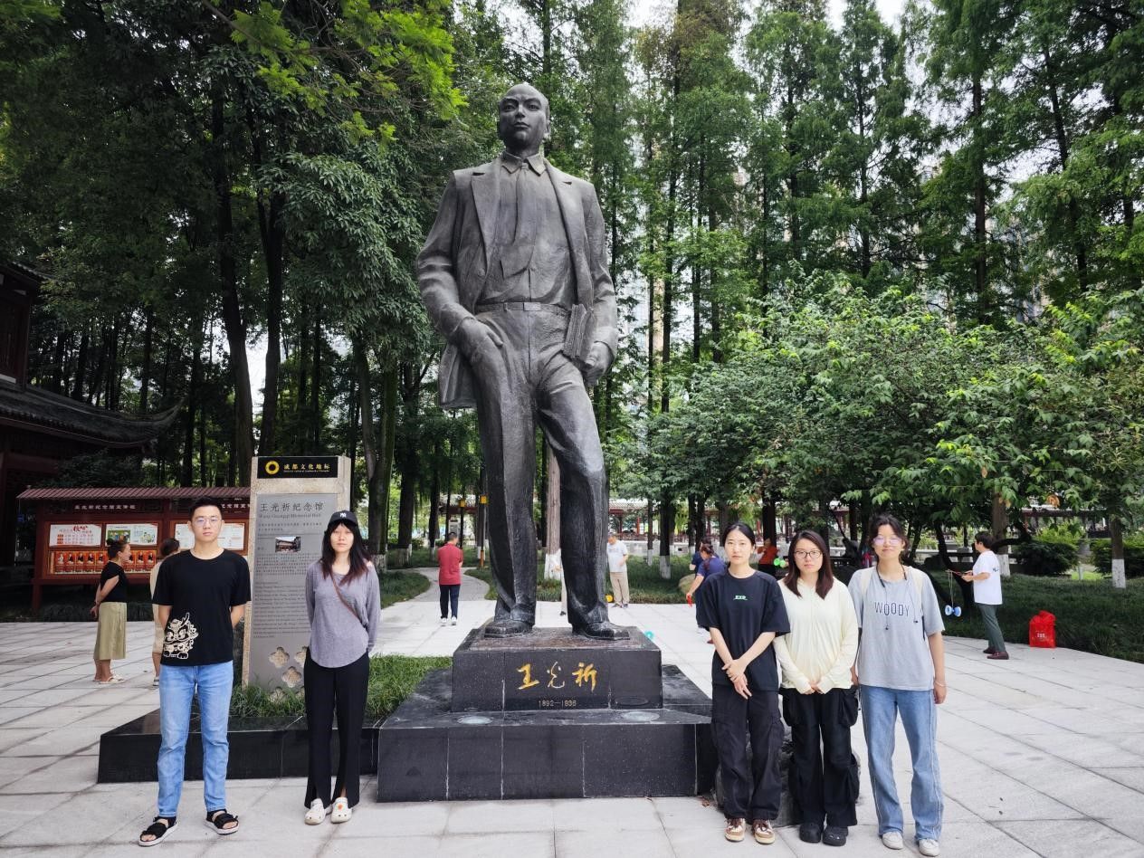 为了更加直观地感受红色历史与文化,团队成员还组织前往红岩革命纪念馆和王光祈纪念馆参观学习。成员们通过馆内陈列的大量珍贵的历史文物和革命资料,了解到红岩革命根据地的创建、发展及其在中国革命历史中的重要作用。参观过程中,团队成员通过看到一张张革命先烈的照片,知晓了先辈们在艰苦环境中坚持斗争的故事,激发起对红岩精神的深刻敬仰。成员们也仔细观摩展厅内的每一段文字与展品,从王光祈先生为国家奉献所有、奋斗前行的一生中,学会了当代青年应用自身所学为祖国建设作出贡献的宝贵精神。