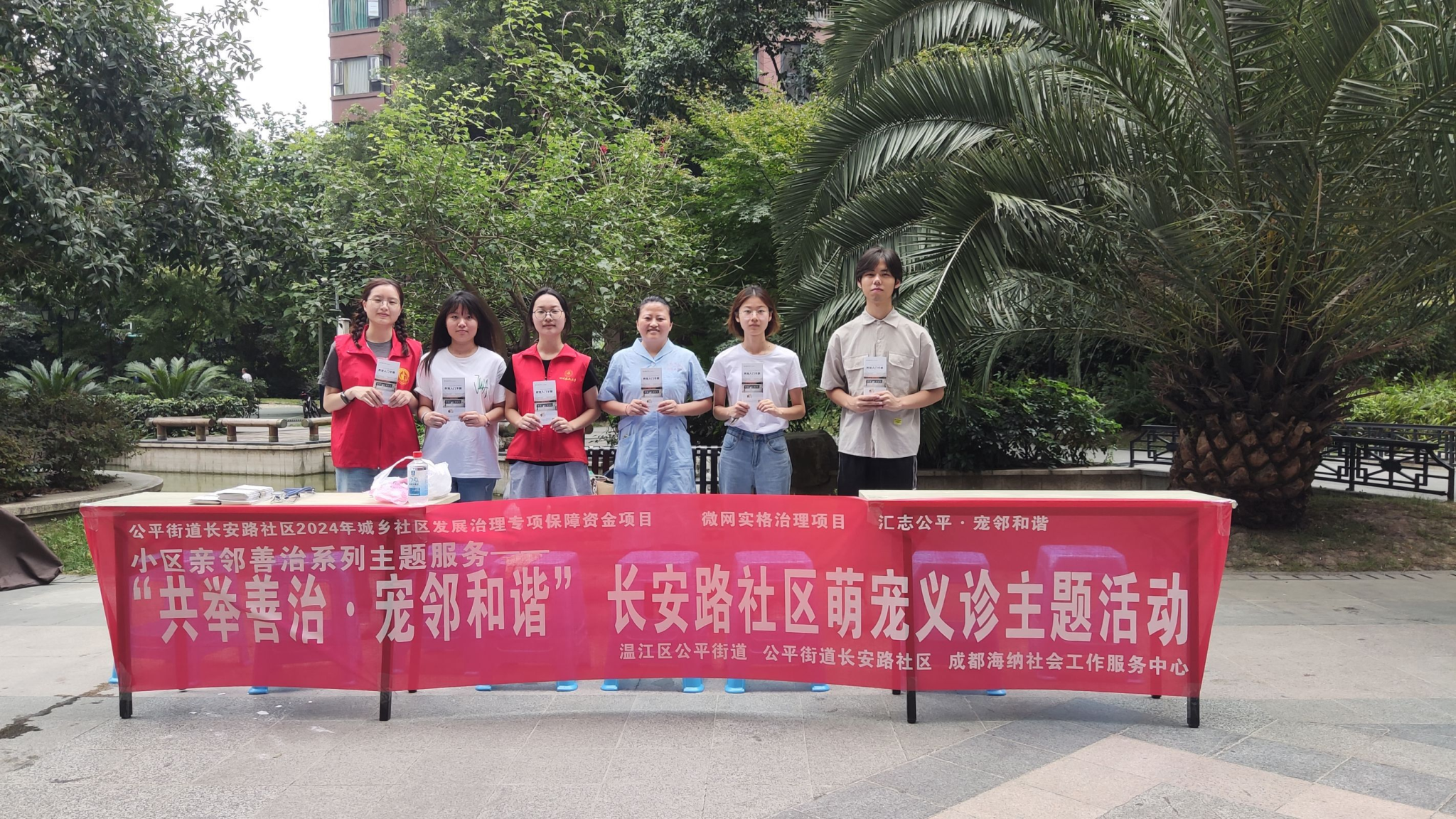 活动开始前,志愿者们满怀热忱,布置现场、准备医疗用品,迎接萌宠们的到来。随着义诊的进行,志愿者们积极向居民发放宠物健康手册,向宠物主人普及宠物日常护理、疾病预防等知识。