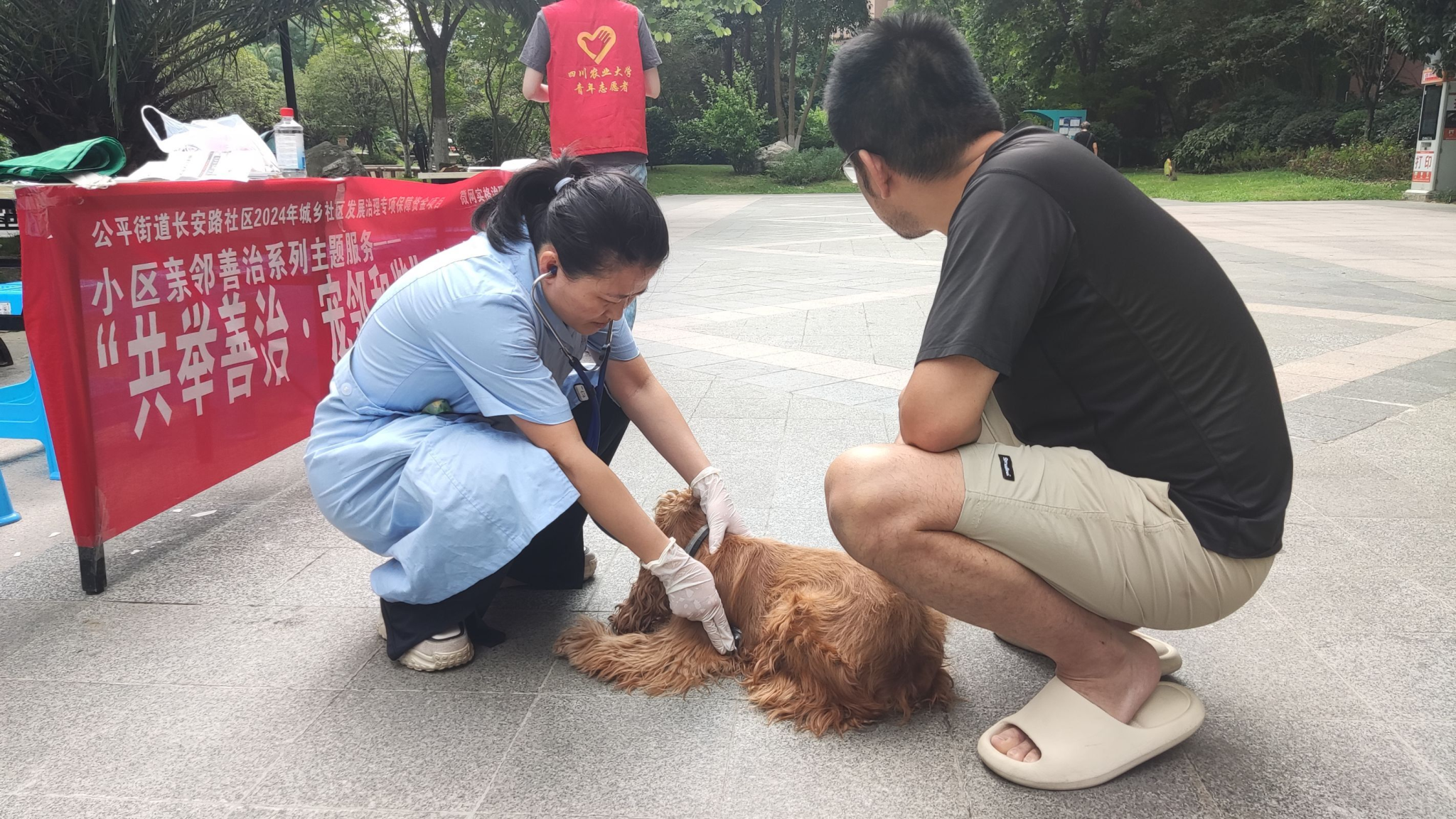 8月30日,由德赢VWIN官方网站教学动物医院的才冬杰老师、临床兽医学专业研究生以及本科生组成的师生志愿者团队为成都市温江区公平街道长安路社区居民的宠物们提供了一场免费的义诊服务。此次活动旨在提高居民对宠物健康的认识,并为宠物主人提供专业的医疗咨询和初步检查服务,促进宠物健康成长。