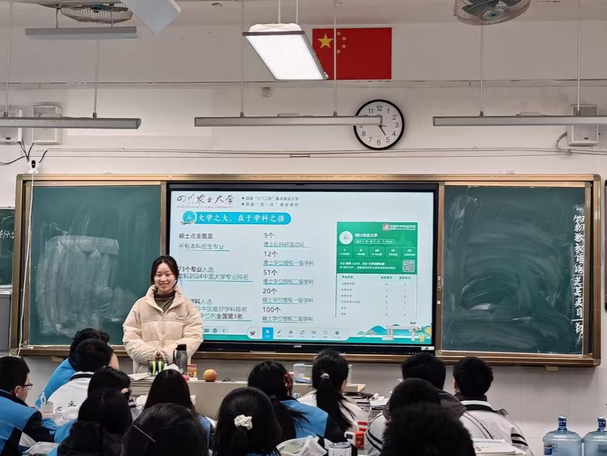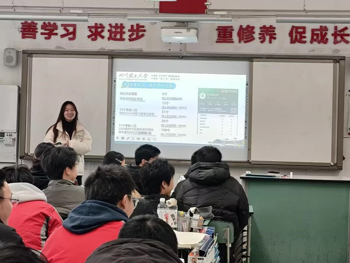 1月16日,团队又来到了位于成都崇州的崇庆中学,面向高三24班进行了宣讲。据团队了解,高三24班为复读班级,他们对此次的宣讲也同样充满了期待,宣讲过程中很专注,每位学生都十分认真地聆听。