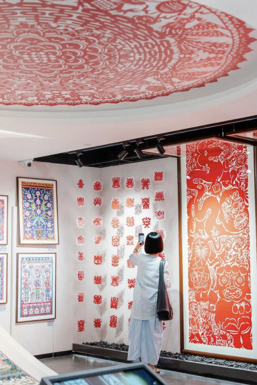 活动伊始,团队成员根据各自家乡的实际情况,或通过线上查阅资料,或实地走访参观,踏上了探寻红色文化遗址或非遗文化地点的征程。在陕西,赵泗粞同学来到了当地著名的陕西剪纸艺术博物馆。这座承载着丰富剪纸历史的建筑,展览着许多栩栩如生的剪纸作品。通过参观馆内陈列的珍贵作品、历史照片以及聆听讲解员的详细介绍,赵泗粞深入了解了剪纸这样的非遗文化。一件件精巧的剪纸艺术品,一段段感人至深的传承故事,都让她深刻感受到非遗文化传承者们对技术精益求精的追求,以及对美好生活的热爱。