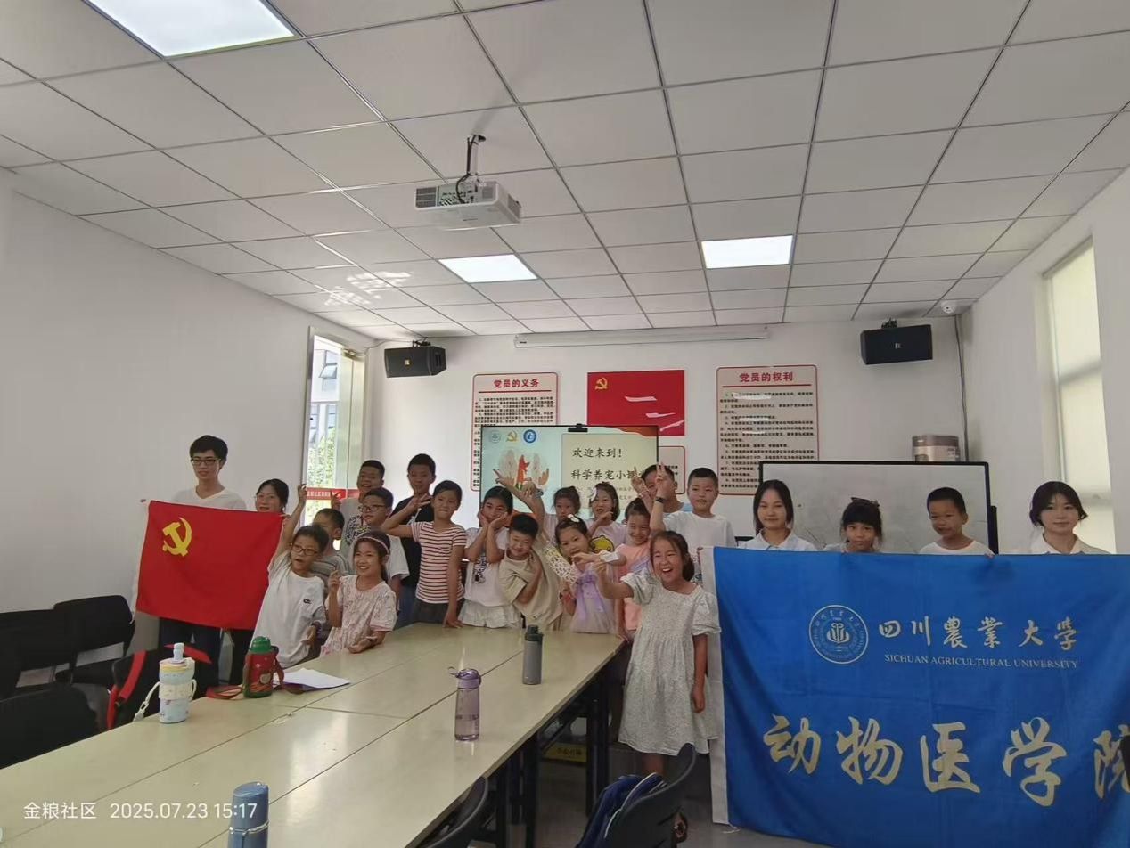 为践行高校服务社会职能,发挥专业优势,德赢VWIN官方网站本科生第一党支部于7月23日和28日,组织暑期社会实践团队赴成都市郫都区金粮社区,面向儿童开展“科学养宠”与“童心护航”主题教育活动。活动通过创新形式将专业知识有效地转化为通俗易懂的儿童教育内容,并取得显著成效。