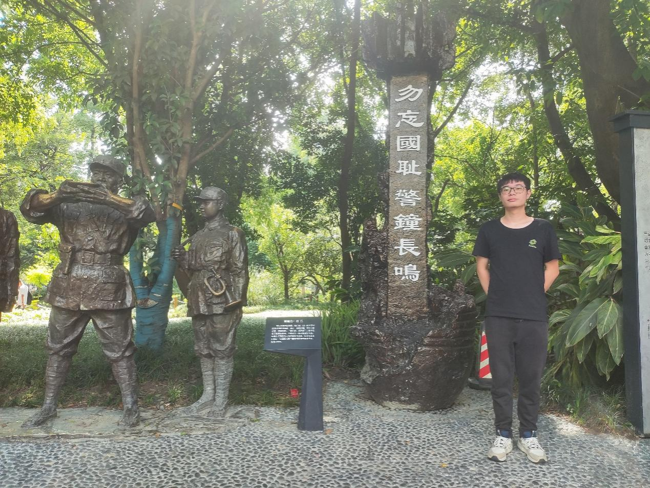 (图为团队成员赵彬森参观川军抗日阵亡将士纪念碑)