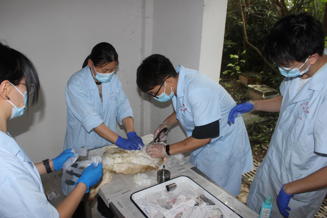 实践期间,团队聚焦养殖场病害防控需求,系统性开展病料检测工作。7月29日,团队在朱德康老师的指导下进行了关于病料检测具体操作和注意事项的学习。7月31日,队员们接收到来自苍溪养殖户送检的病死鹅病料,该鹅群为174日龄,零星死亡。队员们对该病死鹅用咽拭子采集呼吸道样本,通过平板划线采集肝脑样品,严格按照规范流程完成采集登记。