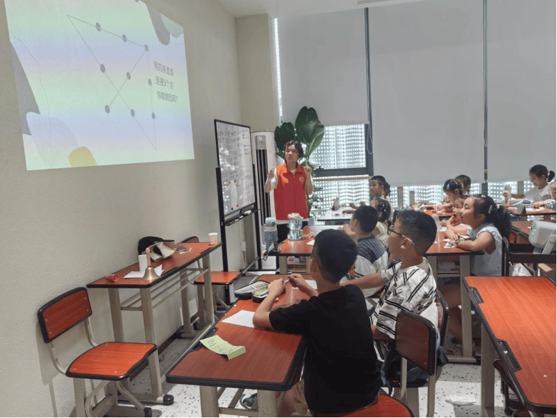 7月7日活动正式开始,正值炎炎夏日,“蒲公英”志愿者们到场根据实际情况灵活调整活动计划,很快适应于紧张而充实的支教生活。成员们秉持着“寓教于乐,开拓视野”核心理念,通过互动演示、趣味视频、自由创作等方式激发儿童学习兴趣,让孩子们在轻松愉悦中收获新知。在扭扭棒手工制作的好奇心间,在一双双求知的目光里,在素拓活动的欢声笑语中,孩子们与志愿者之间建立起了深厚的情感羁绊。在红色故事分享会上,先烈英勇事迹激起热烈讨论,在孩子们的心中厚植红色基因。正如习近平总书记的嘱托,“热爱党、热爱祖国、热爱人民,用实际行动把红色基因一代代传下去”。