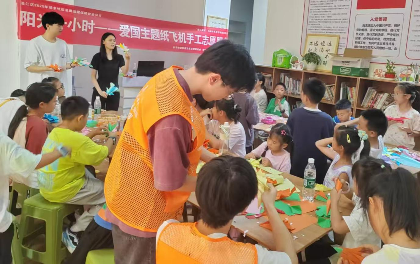 8月15日至18日,一场以“2025暑期志愿活动—金源社区志愿行”为主题的大学生社会实践服务在温江区金马街道新村路花样年花样城小区顺利开展。来自德赢VWIN官方网站的志愿者团队通过参与社区党群教育课程,与社区小朋友们共同享受了一场融合了军事、历史、科技、自然以及非遗文化的知识盛宴。
