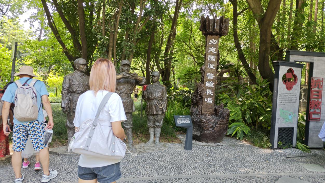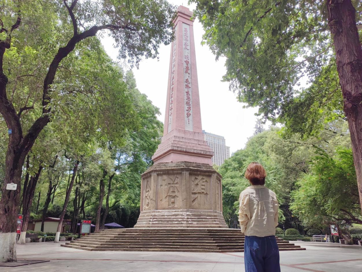 在成都,团队成员驻足川军抗日阵亡将士纪念碑前,研读碑文记录的峥嵘岁月。通过资料展板与志愿者讲解,团队成员们深入了解到抗日战争时期,川军将士身着单衣、脚穿草鞋,持简陋武器奔赴前线的壮举,从战斗故事与牺牲数据中,同时也体会到了“无川不成军”的豪迈与悲壮,更加理解了和平生活的珍贵,纷纷用镜头记录细节,留存历史记忆。
