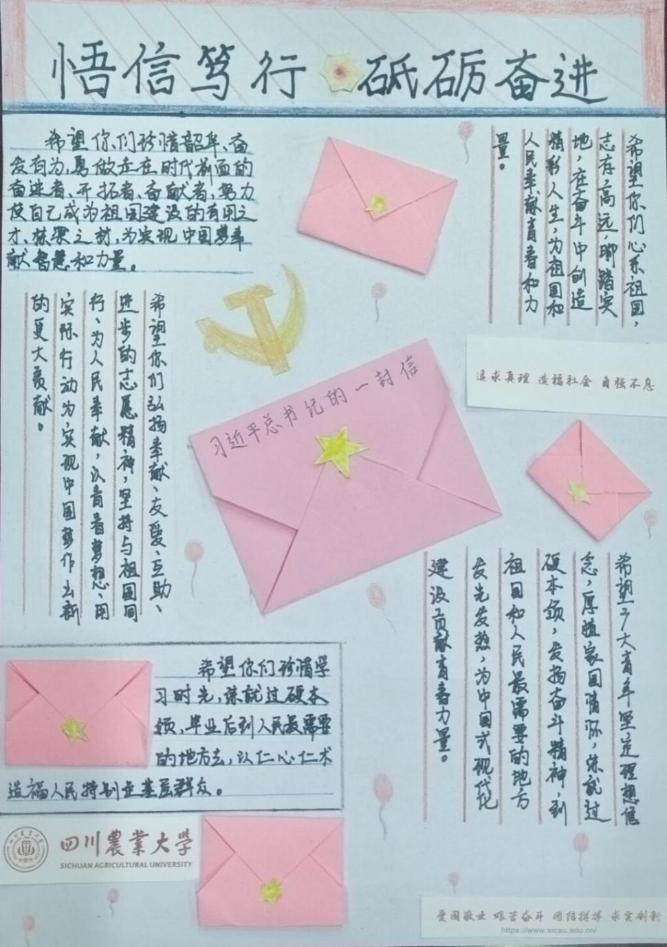 7月13日至8月1日,团队成员自主选择红色主题,完成诗歌、海报、插画等8类共17件红色作品,并将作品发布在小红书、QQ空间等网络社交平台。药剂202201班李佳橙以“烽火里的红星”为主题创作诗歌,用“枪托磨亮月光”、“新苗从弹壳钻出”等质朴意象,诠释对革命先烈的崇敬;药学202202班古丽筠结合德赢VWIN官方网站校训与习近平总书记回信内容制作手账,在卡纸裁剪与文字排版中感悟人民领袖的赤子之心;药学202301李琴将对祖国的自豪之情化作笔下优美线条制成书签,祝愿华夏繁荣昌盛、万事太平;队长药学202302班柴堰颖则运用HTML技术搭建建党104周年互动网站,实现跨学科创新。