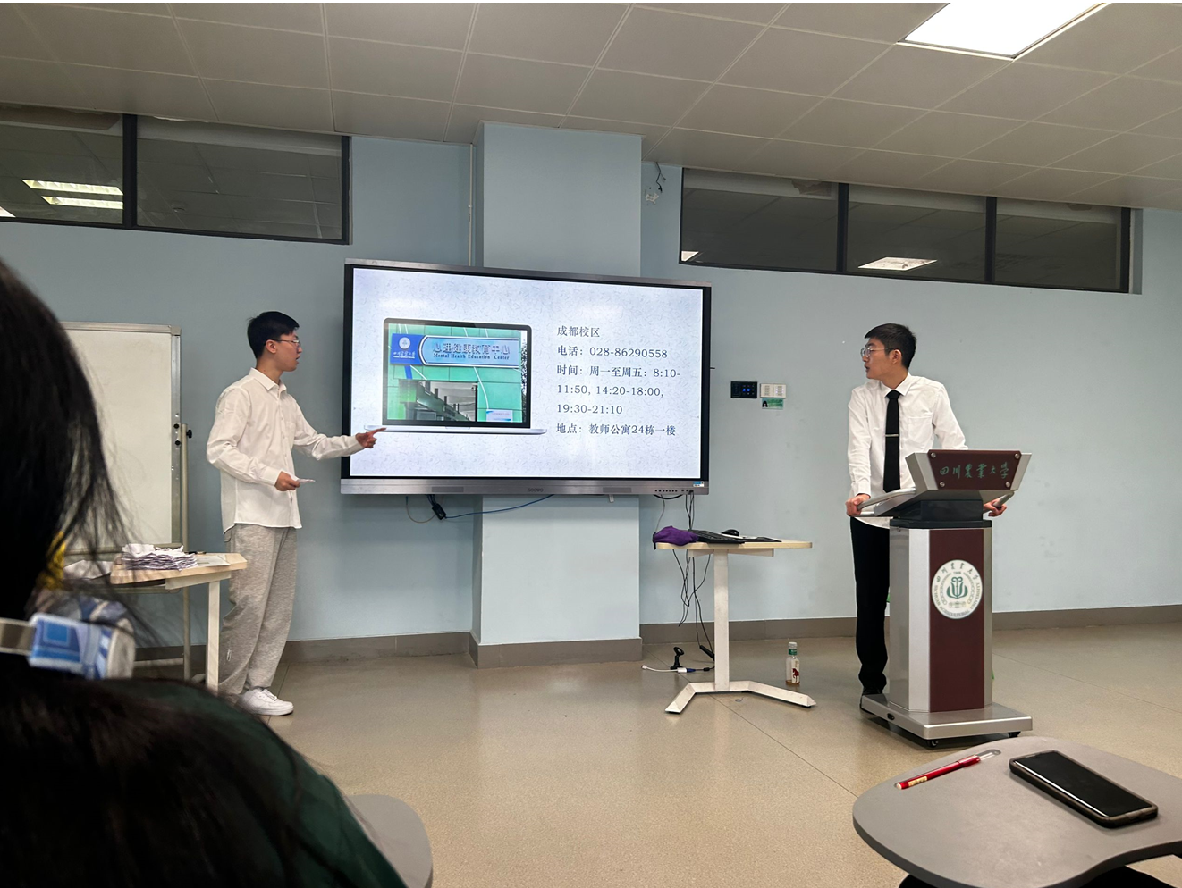 (图是主持人介绍心理咨询中心)