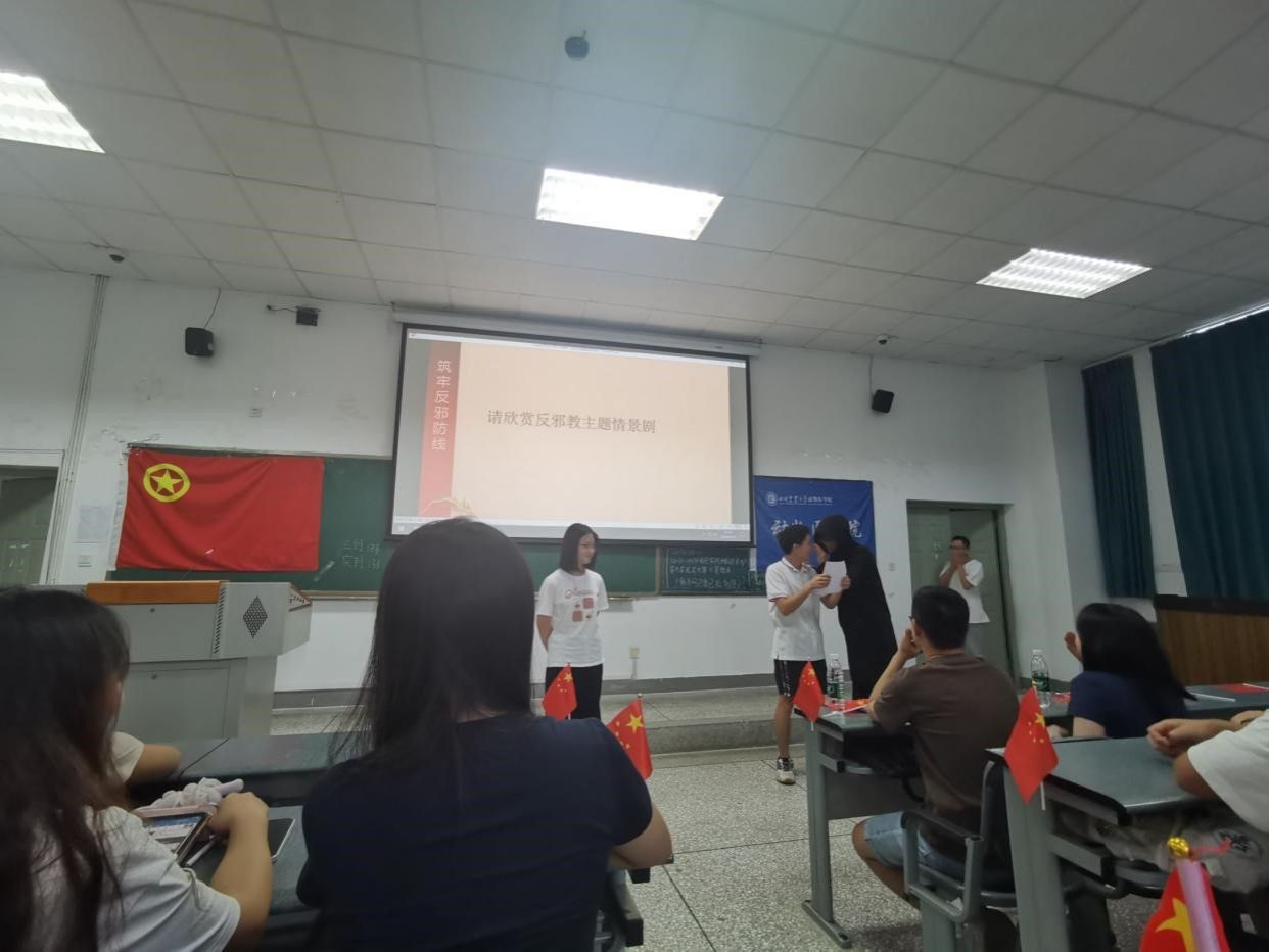 活动第二部分主题为“共唱反邪高歌,谱写青春乐章”。班团活动开始前,各支部组织全体成员积极参与反邪教科普知识网络有奖竞答,并在班团活动上展示部分支部成员的优秀成果,同时进行现场知识竞答,巩固成员们所学知识。现场还进行了简短的反邪教主题情景剧表演,更直观地展现出邪教带来的危害,该环节提高了青年识别邪教的能力和防范邪教侵蚀的意识。