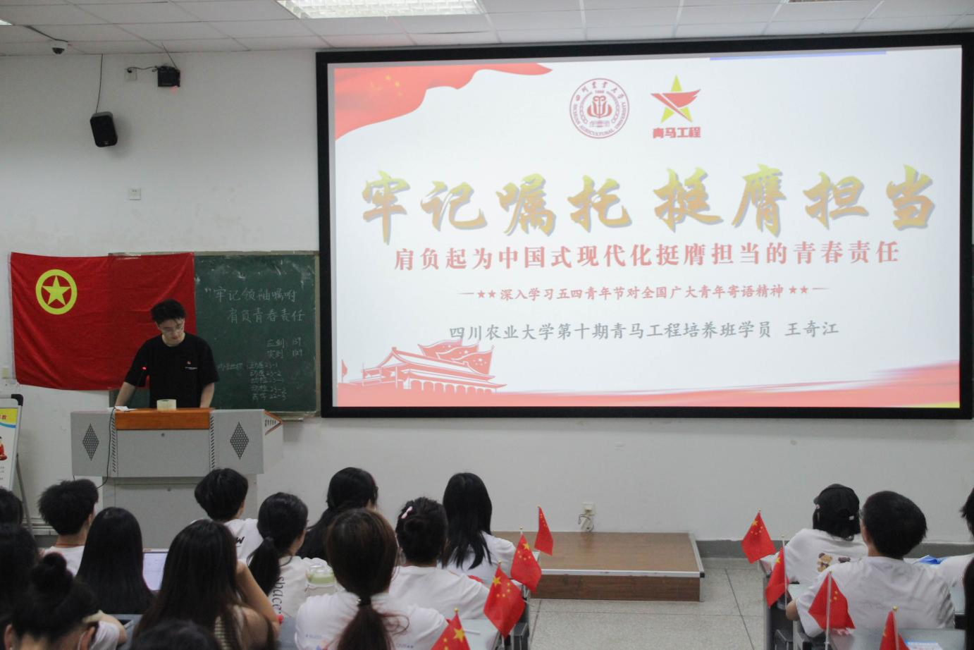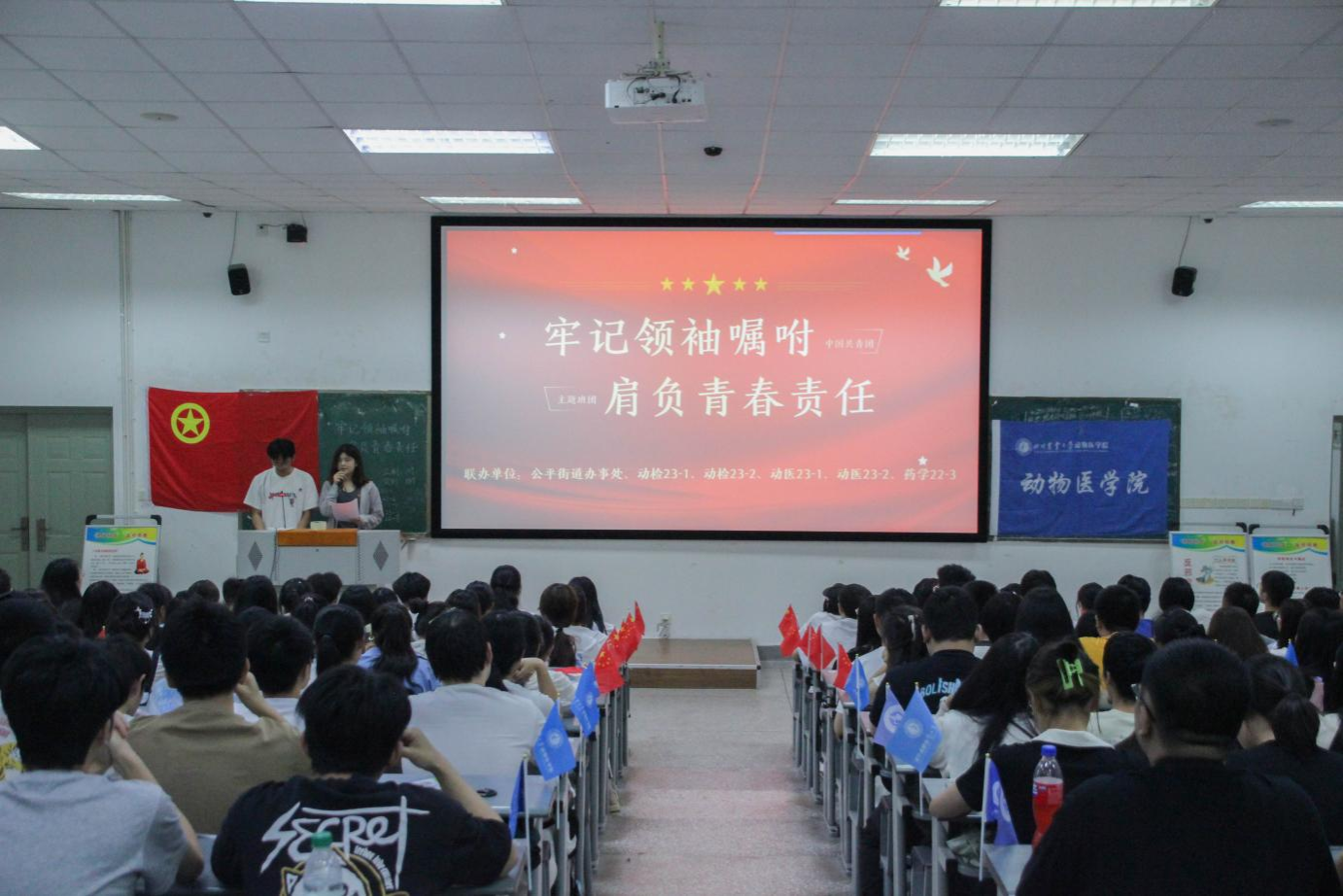 5月31日,动检202301、动检202302、动医202301、动医202302、药学202203五个团支部在4-A108联合举办“牢记领袖嘱托,肩负青春责任”5月主题班团活动。本次活动旨在深入学习贯彻习近平总书记五四青年节对全国广大青年寄托精神,动员青年一代肩负起为中国式现代化挺膺担当的青春责任。