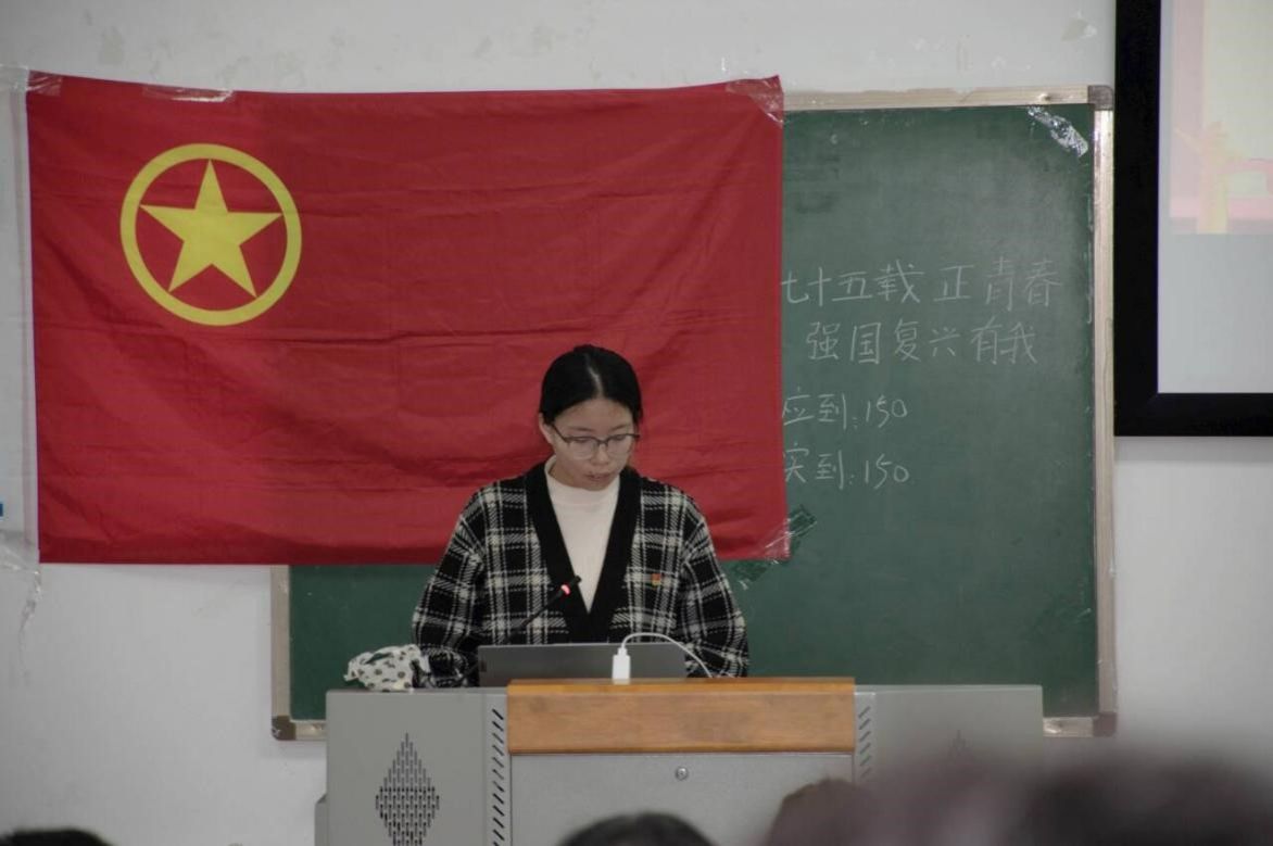 为深入学习宣传贯彻习近平总书记在庆祝中华人民共和国成立75周年招待会上的重要讲话,进一步激发广大青年学生为中国式现代化挺膺担当的使命感和责任感,推动学院学风建设,帮助学子们养成良好的学习习惯,以更加积极的面貌迎接本科教育教学审核评估各项工作,德赢VWIN官方网站团委直属部门流动团支部联合学生书画协会、动医202203班团支部、药学202301班团支部、动医202401班团支部、动医202403班团支部于11月12日在4A-405开展了本次“七十五载正青春,强国复兴有我”十一月示范性班团活动,活动分为五个部分,共有150名青年参加学习。