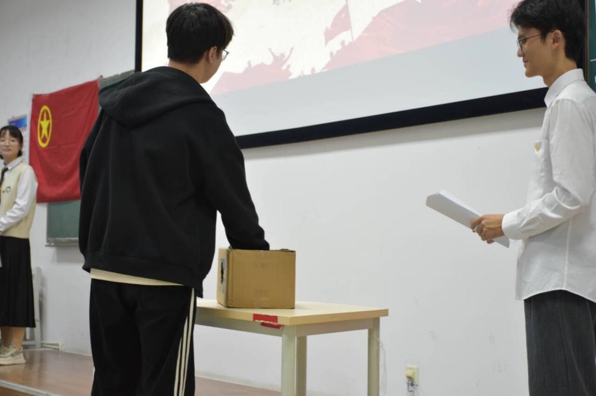 “节粮我践诺,青春显担当”。药学202301班在活动开展前采访了食堂工作人员及就餐同学,了解食堂浪费情况,并制作相关视频进行播放。随后,主持人带领参会人员进行“粮食”黑箱摸物小游戏,并通过介绍黑箱中粮食的浪费情况,呼吁广大团员青年珍惜粮食从自身做起。