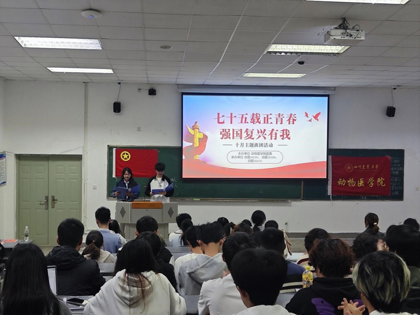 11月5日下午,“七十五载正青春,强国复兴有我”主题班团活动在4A-107顺利举行。此次班团活动由动医202306团支部、动医202204团支部、动医202402团支部联合开展。