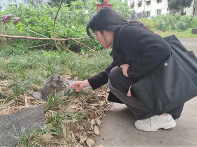 同一时间,其他支部成员自发前往校园各个角落,利用课余时间对校园流浪猫进行科学投喂与照料。十余名学生手持猫粮,在图书馆旁的花园、实验楼旁的草坪等地定点投喂,并轻声呼唤猫咪。他们随身携带纸巾清理食盆,避免食物残留影响环境。参与此次活动的支部成员张强英表示:“通过参加这次关爱流浪猫的活动,我们体会到‘雷锋精神’不仅是助人,更是对生命的尊重。”