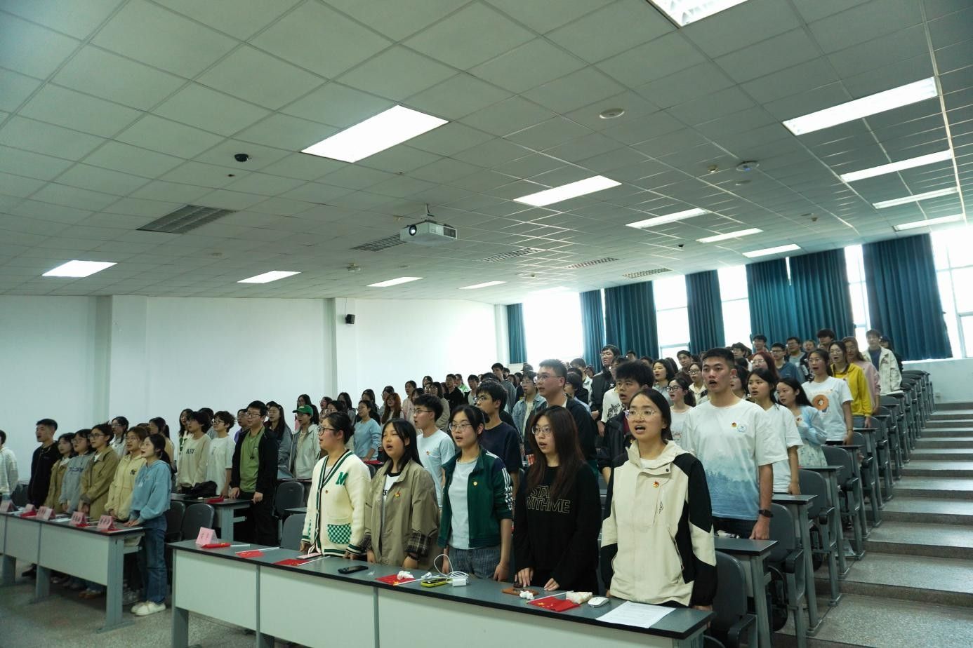 活动第一项,齐唱团歌。紧接着主持人带领青年团员们进入第一个环节:“领悟两会领航向,砥砺坚定前行路”。此次活动邀请到了青马班王世均来带领在场团员青年学习习近平总书记在两会期间的重要讲话,引领各支部团员精准把握两会核心要义。通过王世均的生动讲解,各团支部成员对于两会精神有了更加深刻的认识。