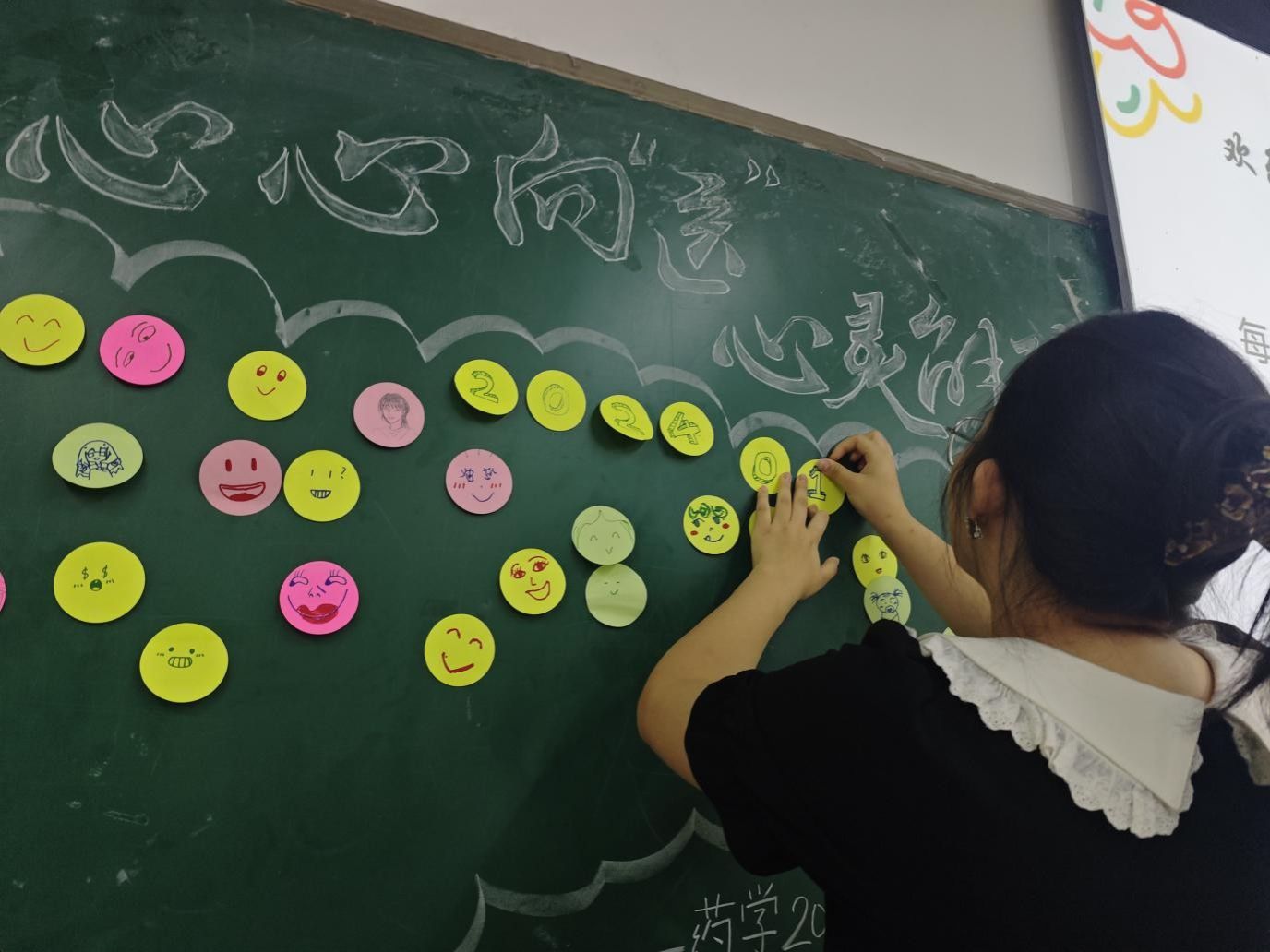 全员手绘笑脸墙环节将整场活动推向高潮,每个人在便签上画下各色笑脸,同时写下平时羞于开口说出的真心话。由这一张张多彩的便签纸构成的笑脸墙承载了众人对自我的鼓舞,对朋辈的感恩和对未来的展望,它也象征着药学202401班这个大家庭“‘药’在一起”的团结精神。活动进入尾声,与会人员齐站在笑脸墙前,以一张合影定格了这个充满温情的时刻。