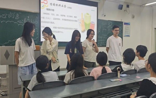 首个环节"情绪饮料猜猜猜"以轻松氛围成功破冰。班级成员们随机抽取饮品后,需用生活场景或身体感受描述对应饮品所联想到的情绪。余怀宇拿到椰子水时说道:"这让我想起在海滩边散步的轻松时光。"而吴世伟接过可乐后坦言:"气泡在舌尖炸开的感觉,就像考前复习时紧张又期待的心情。"简单的饮品化作情感纽带,既让班级成员回忆了日常生活中的种种情绪,学会正视自身心理感受,也加强了班级成员之间的默契交流。而接下来的药学版“谁是卧底”游戏,则让活动既充满了刺激与笑声的碰撞,也凝聚着知识与乐趣的交汇。游戏通过把词条换成解剖学专业名词,让成员们在相互揣测间,加深了对知识点的理解与记忆——这种寓教于乐的方式让课本知识变得生动可感。