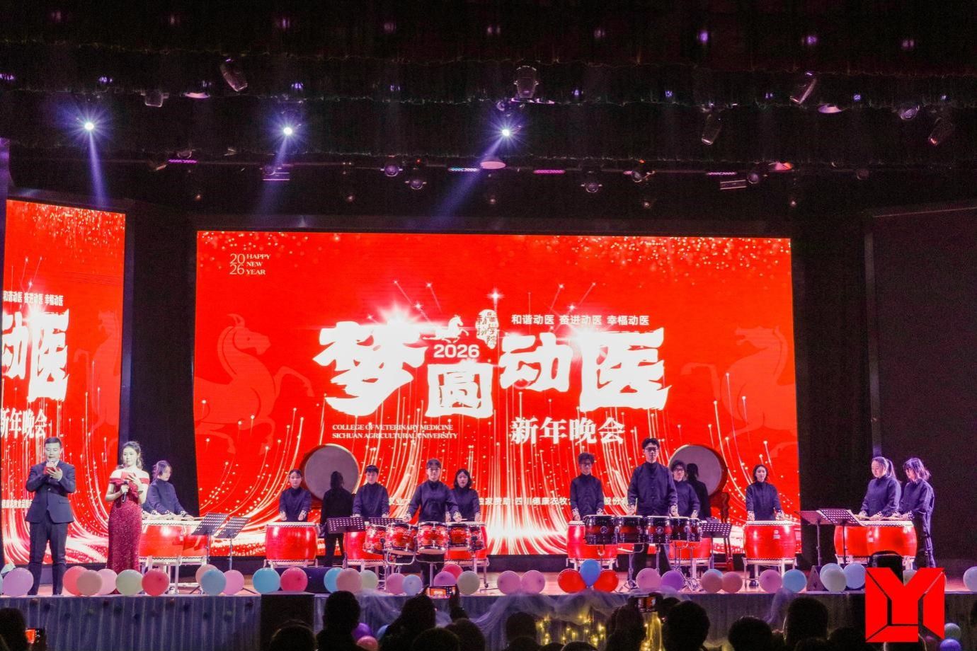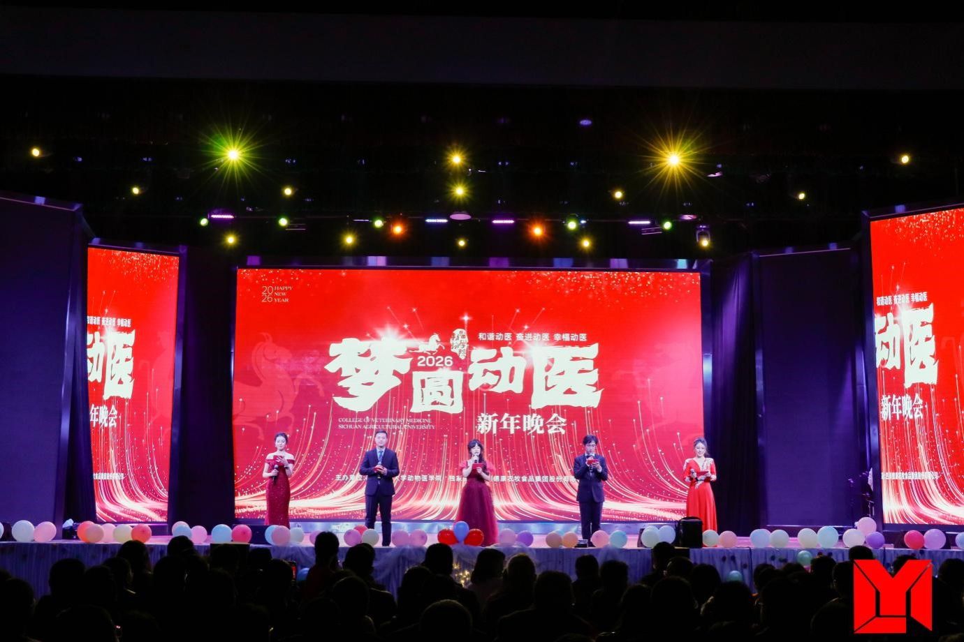 12月26日晚,德赢官网“梦圆动医”2026新年晚会在麦立方隆重举行。该晚会由四川德康农牧食品集团股份有限公司独家赞助。学院院长陈舜、党委书记侯维,校科技处副处长张沙秋,学院副院长左之才、党委副书记宋三多、副院长陈正礼等领导与学院全体教职工及全体本硕博学生欢聚一堂,共迎新年、共赏盛宴。