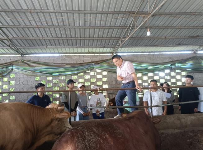 中国共产主义青年团筠连县委员会书记周凇玮、筠连县畜牧水产业发展服务中心党组书记、主任郑家林,利用工作间隙看望了筠连团师生一行,分别介绍了筠连县农村青年种养情况、全县肉牛产业发展情况及技术需求。