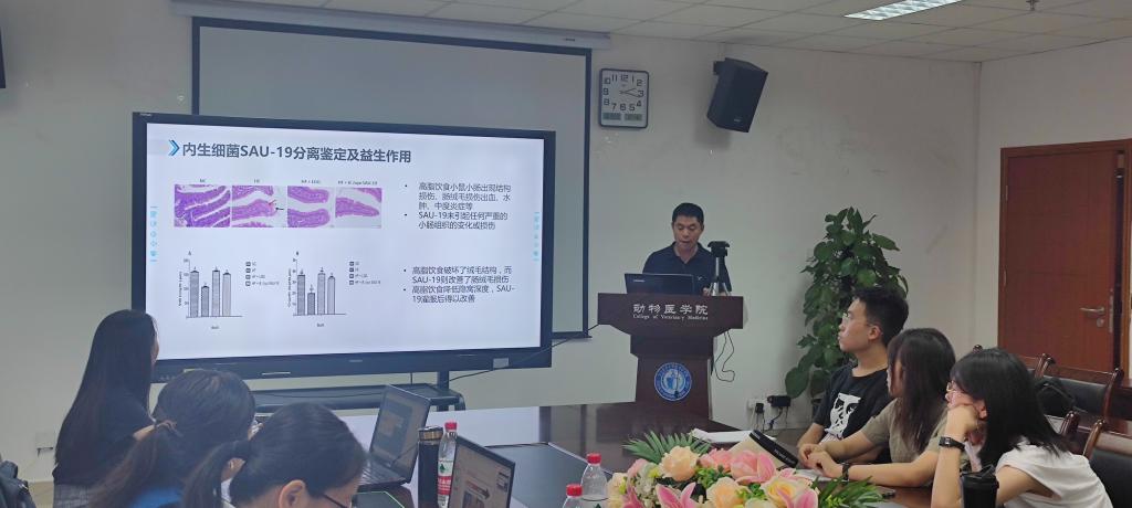 下午,西南区分会场由中国畜牧兽医学会兽医内科与临床诊疗学分会副理事长邓俊良教授主持,线下会场设在德赢VWIN官方网站。下午来自云南农业大学、西南大学、西南民族大学、西藏农牧学院及我校的19位专家学者,紧密围绕兽医内科病与临床疾病诊疗新方法,分别从“营养代谢病防控及机制研究”、“中毒病防控及机制研究”、“临床常见动物疫病防控”、“益生菌筛选及应用”和“动物疫病诊断新方法”等五个方面开展学术报告及交流。我校师生踊跃参加,临床兽医学系胡延春教授和任志华副教授分别作了“紫茎泽兰有益内生菌的分离鉴定及功能研究 ”和“DON对动物免疫毒性研究进展”的学术交流;漆建成、崔玉晶、李嫣然、余月汝、付丽佳、王舒、张潆等 8位研究生分别做了“维生素A和C对7S球蛋白致猪空肠上皮细胞损伤的保护效应研究”、“β羟基丁酸对牛呼吸道健康的影响”、“抵抗素在先天性免疫中的作用研究”、“纳米硒通过线粒体途径对猪冠状病毒致猪ST细胞凋亡的缓解作用”、“高蛋白日粮致断奶仔猪腹泻的机制研究”、“恶性外来入侵植物紫茎泽兰对山羊肠道的影响研究”、“驱蚊蝇盘香对肉牛保健作用的初步研究”等的交流报告。西南片区9所高校以及地方畜牧部门的专家学者共有120余人参会。