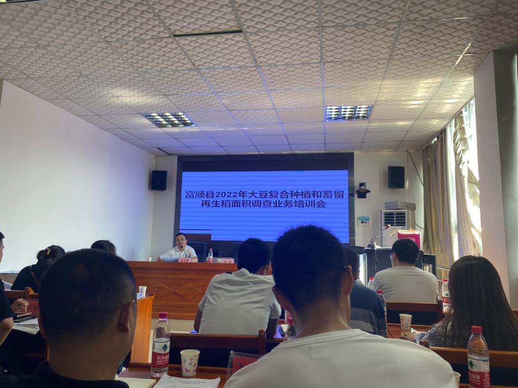 作为全国大豆科技自强示范县,富顺县素有“中国豆花之城”的美誉。7月8日,团队队员跟随赵化镇人民政府经济开发办公室付亨主任前往富顺县人民政府,参与2022年大豆复合种植面积和蓄留再生稻面积调查业务培训会。会上,相关领导积极动员富顺县辖内乡镇负责人亲自实地调查,确保数据和信息的真实性。据发言人刘梅介绍,去年富顺县大豆种植面积位居全川第一,今年的目标是全年播种大豆20万亩以上,预计大豆产量3.5万吨以上。