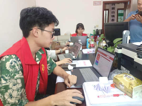 图为宗卓粼在镇农村服务中心办公室工作