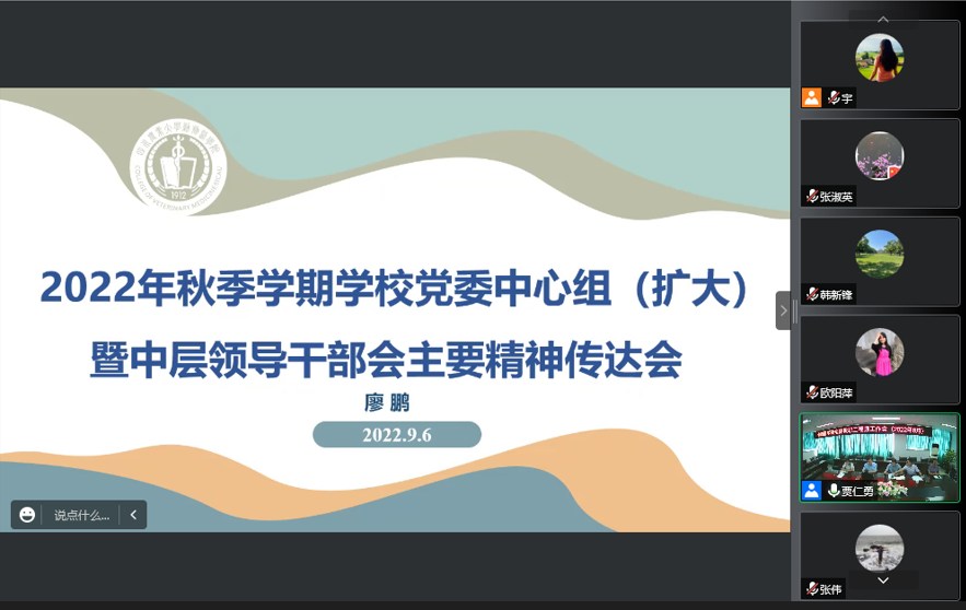 会上,廖鹏全面深入地传达了学校党委中心组(扩大)暨中层领导干部会主要精神,结合学校工作要点,会议传达了开展好迎接、学习、宣传党的二十大专项行动等八项重要工作。会议对学院党建、网络安全管理、招生就业等工作方面进行简要阐析,同时对相关工作进行部署。随后,会议传达了学校疫病防控的最新要求和重点事项,对防控期间教职工和学生相关管理与教育的重点事项要高度重视。