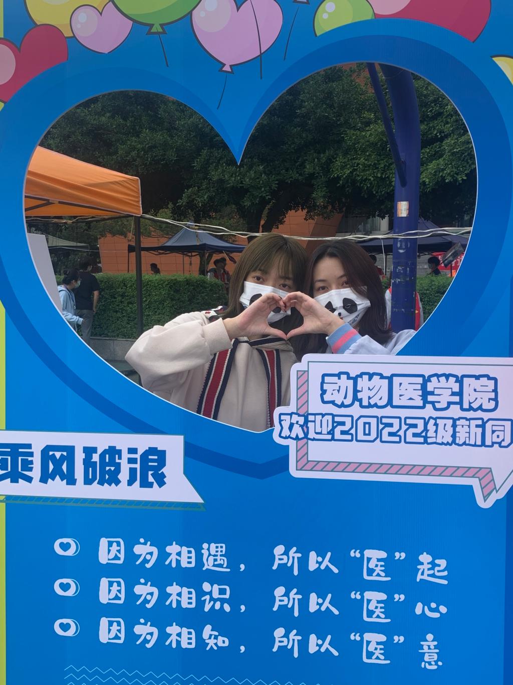 迎新拍照纪念板成了新生争相留念的地方,虽阴雨绵绵,迎新现场的欢笑声依然让新生们切身感受到了积极向上的学院氛围。相信,未来2022级新生们将在“和谐、奋进、幸福”的学院文化中踔厉奋发,笃行不怠,用青春与汗水写就动医崭新篇章。