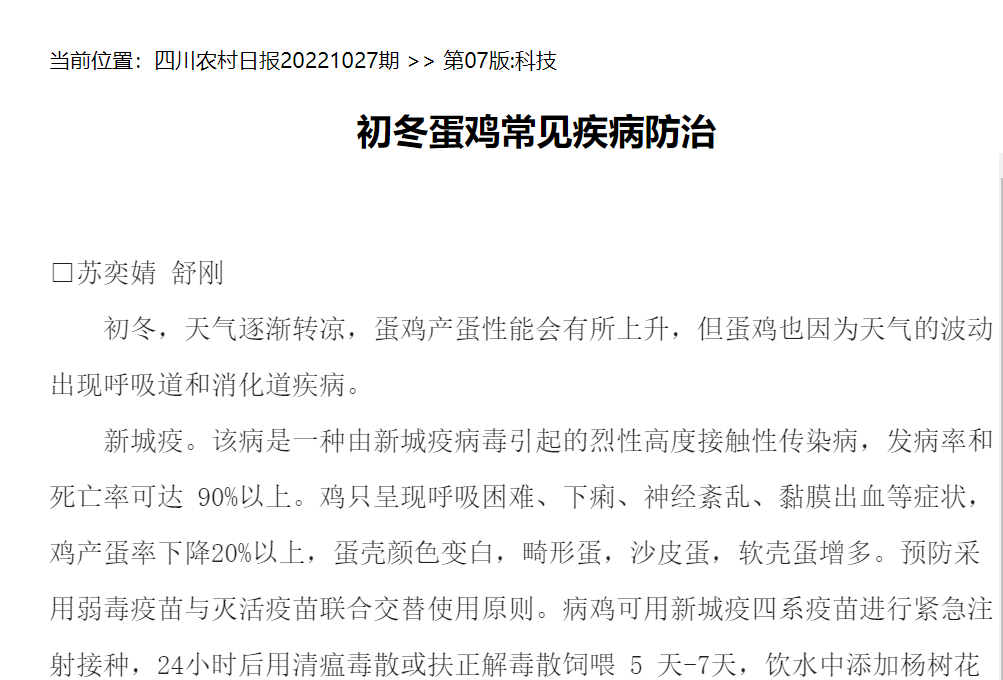 初冬,天气逐渐转凉,蛋鸡产蛋性能会有所上升,但蛋鸡也因为天气的波动出现呼吸道和消化道疾病。