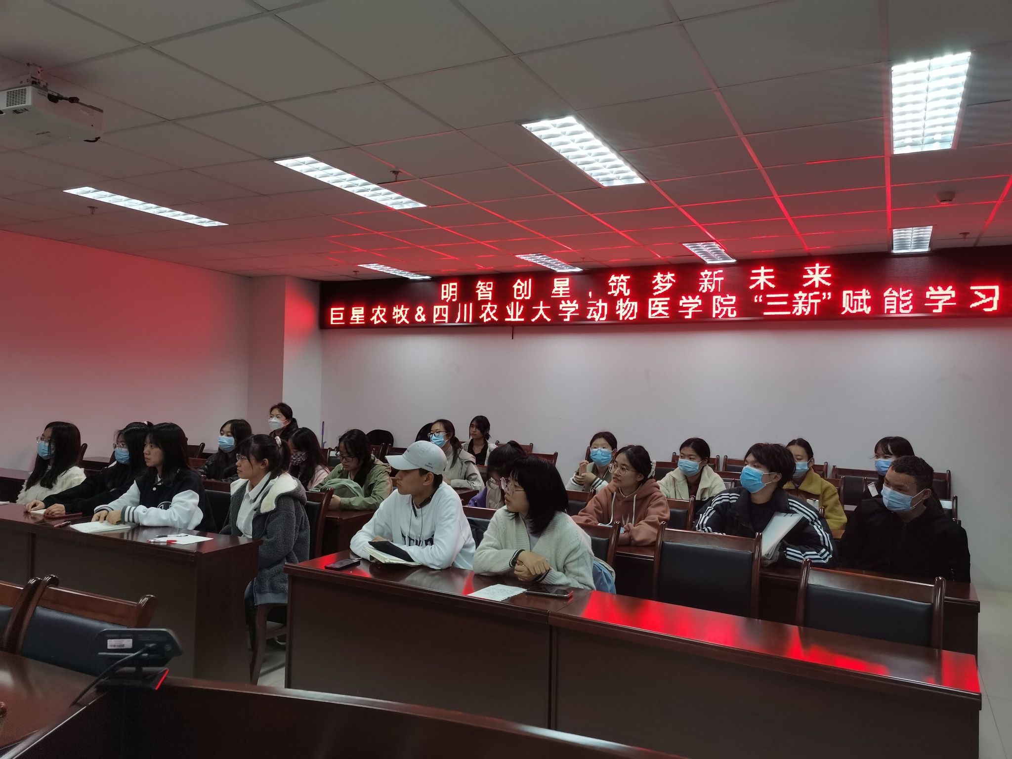 为进一步扩大学院创新创业参与人群,鼓励引导更多青年学生加入到创新创业队伍,11月份开始,学院与巨星农牧集团联合举办“明智创星,筑梦新未来——动医新创营”系列活动,邀请企业高管、资深创业导师手把手、一对一对参与到活动中的学生进行创新创业知识培训,并带领学生从多角度、多维度分析实际创业案例,给学生传授经过实战考验后证实的行之有效的策略和方法,不断培养学生创客思维和创客精神。