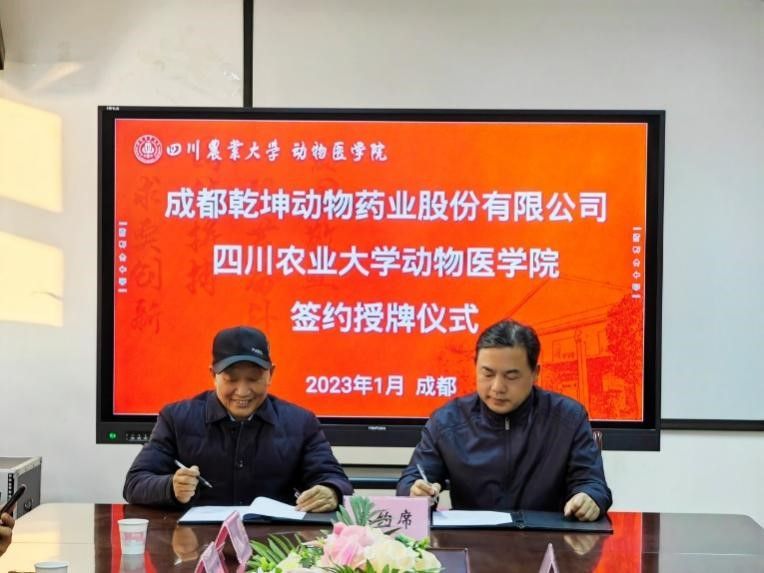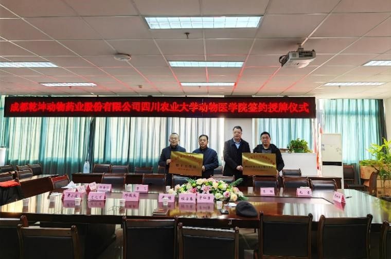 近日,德赢VWIN官方网站与成都乾坤动物药业股份有限公司在学院会议室开展了基于战略合作的座谈会,并签订校企合作协议。成都乾坤药业股份有限公司董事长巫克明、副董事长李强、新兽药工程技术研究中心主任曹飞等一行6人,德赢VWIN官方网站院长程安春、党委书记廖鹏及学院部分老师出席了签约授牌仪式。