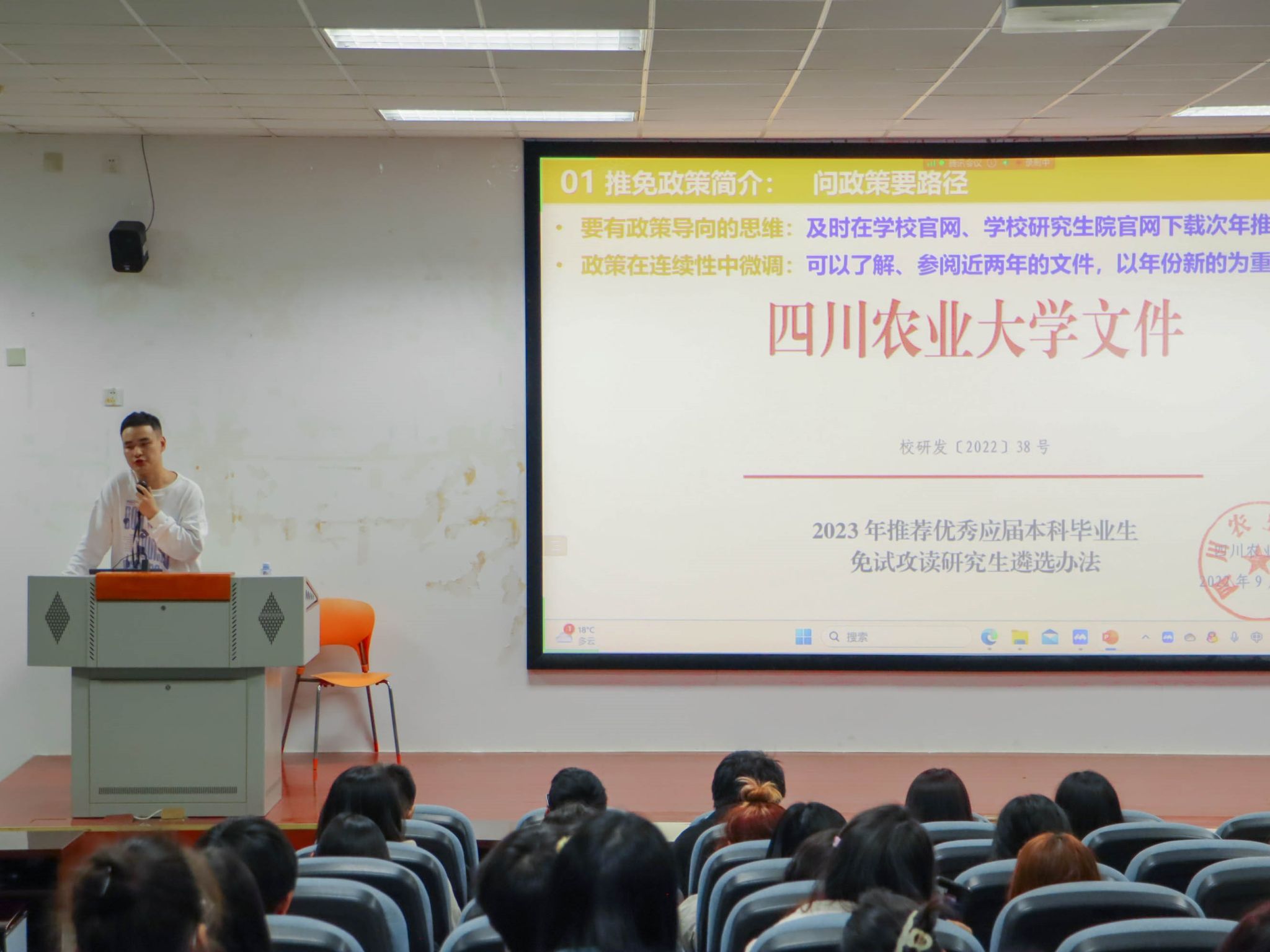 “今天的宣讲会使我受益匪浅。通过师兄师姐们的分享,我对考研、推免以及创新赛事有了更深的了解,结合自身情况学习前辈们的经验方法,我对实现自己的目标有了更清晰的规划。”来自动植物检疫专业的大二学生孔蓓卓在参加活动后表示。